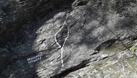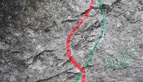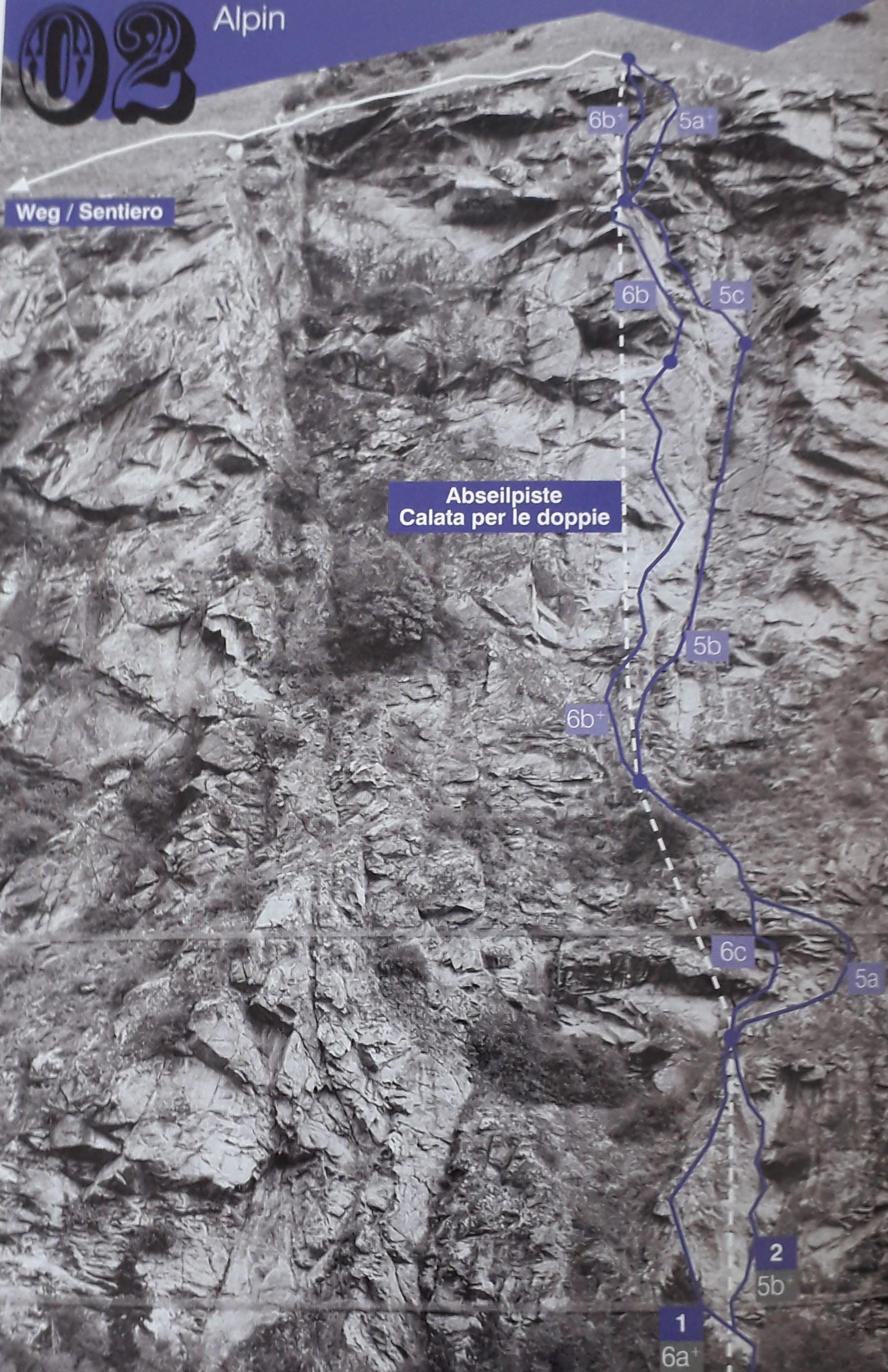 Siehe Wandbild/Toipo: Die Route verlauft parallel zur Route Blättertoag. Die Schlüsselstelle ist in der 2. Seillänge wo man einen Überhang klettern muss, ansonsten ist sie sehr homogen.