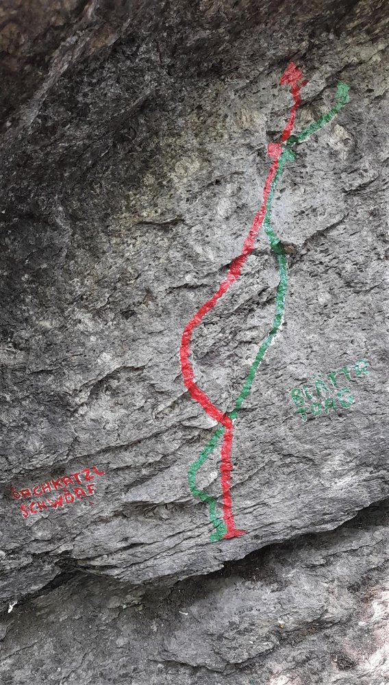 2. Seillänge der Oachkatzlschwoaf wird jetzt mit 6b oder A0 bewertet, Rest wie im Topo.