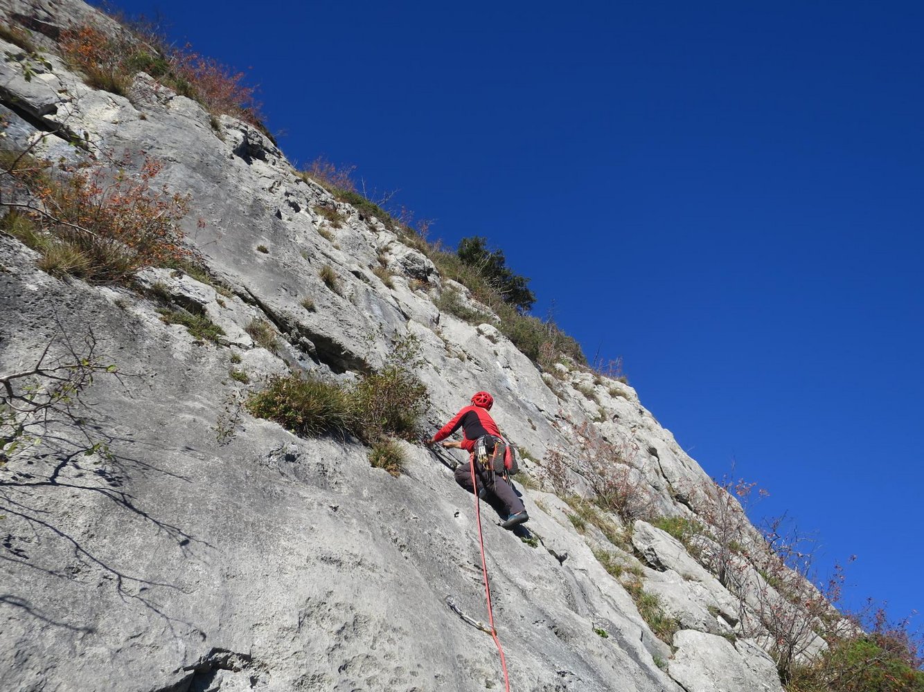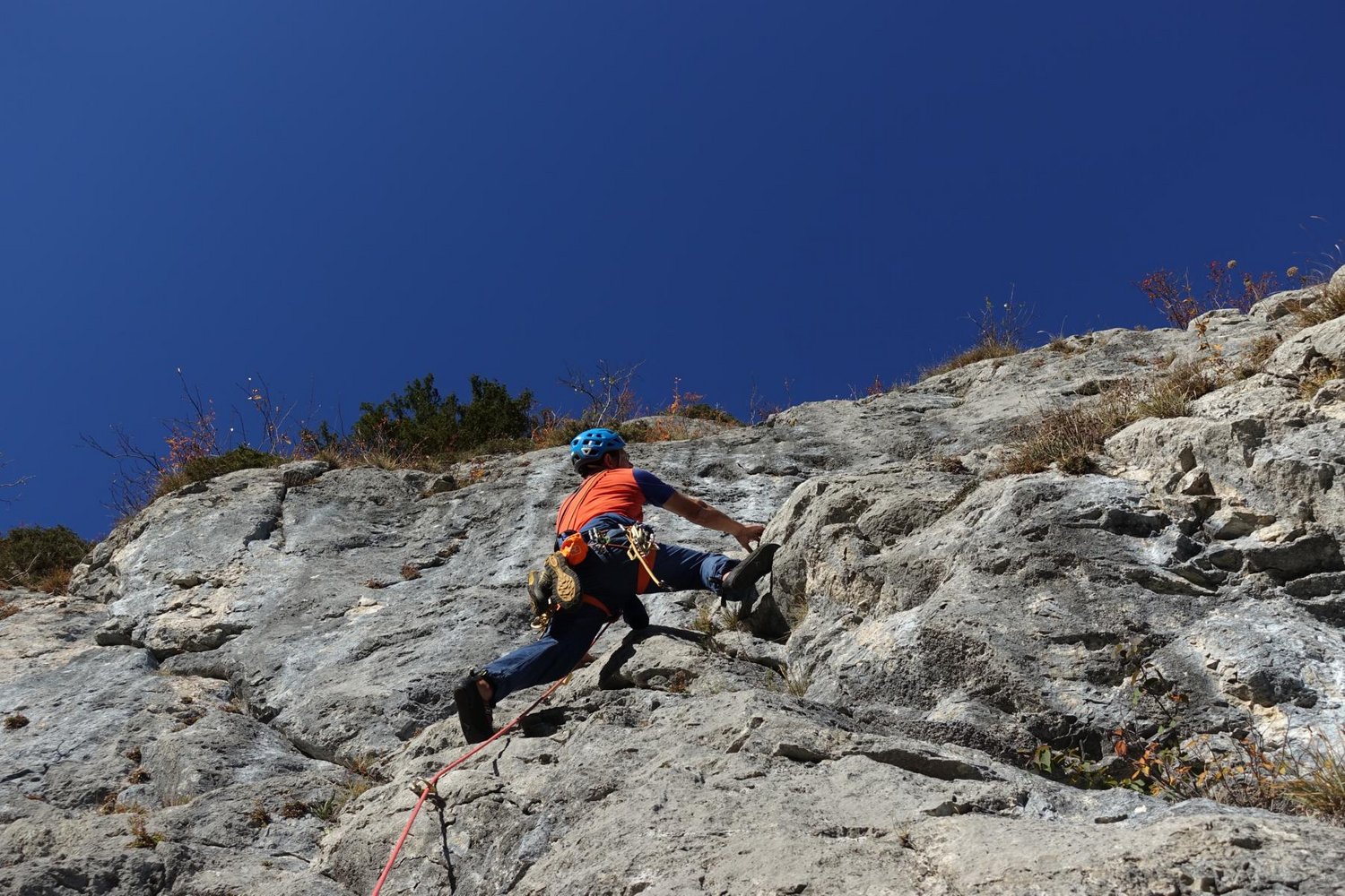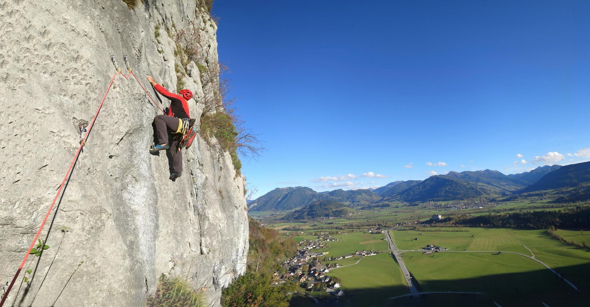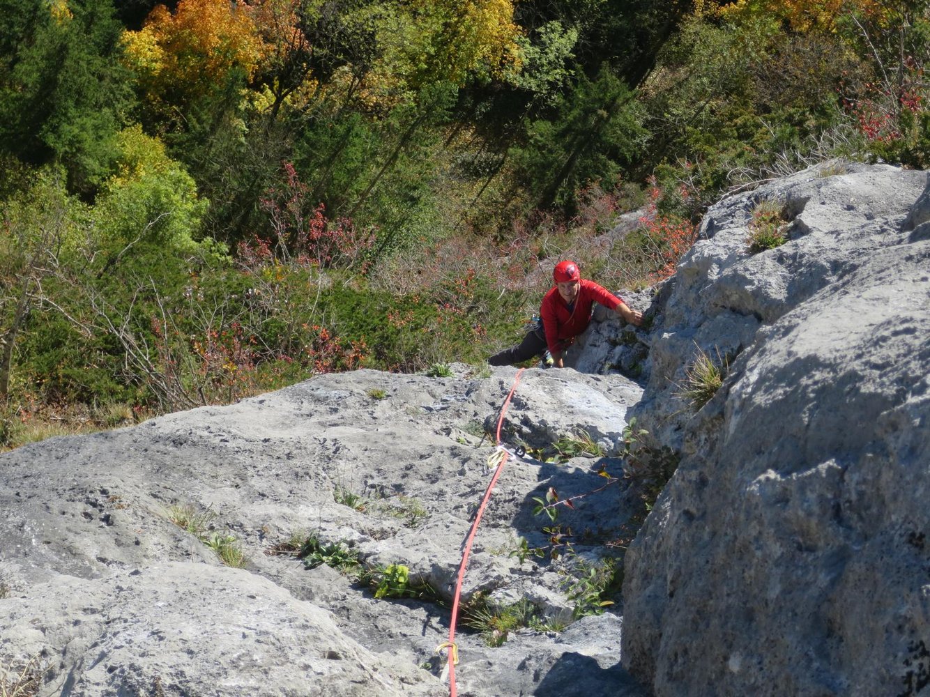 Bei der Drahtseilquerung keinen Steinschlag auslösen, da darunter einige Einseillängenrouten sind.