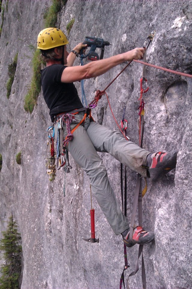 Die Route würde noch nicht völlig frei geklettert und ist derzeit 7 und A0 bzw A1 (Trittschlinge oder Leiter).