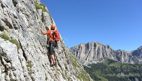 Am Ende der Tour zunächst auf Wiesen etwas aufwärts bis zum Wanderweg. Auf diesem entweder zur Pisciadu Hütte und anschließend durch das Val Setus (tlw. versichert) zurück zum Parkplatz absteigen oder man steigt den Wanderweg links ins Mittagstal ab (auch kurz versichert) und dann auf dem Zustiegsweg zurück zum Parkplatz. Beide Möglichkeiten sind ungefähr gleich lang.