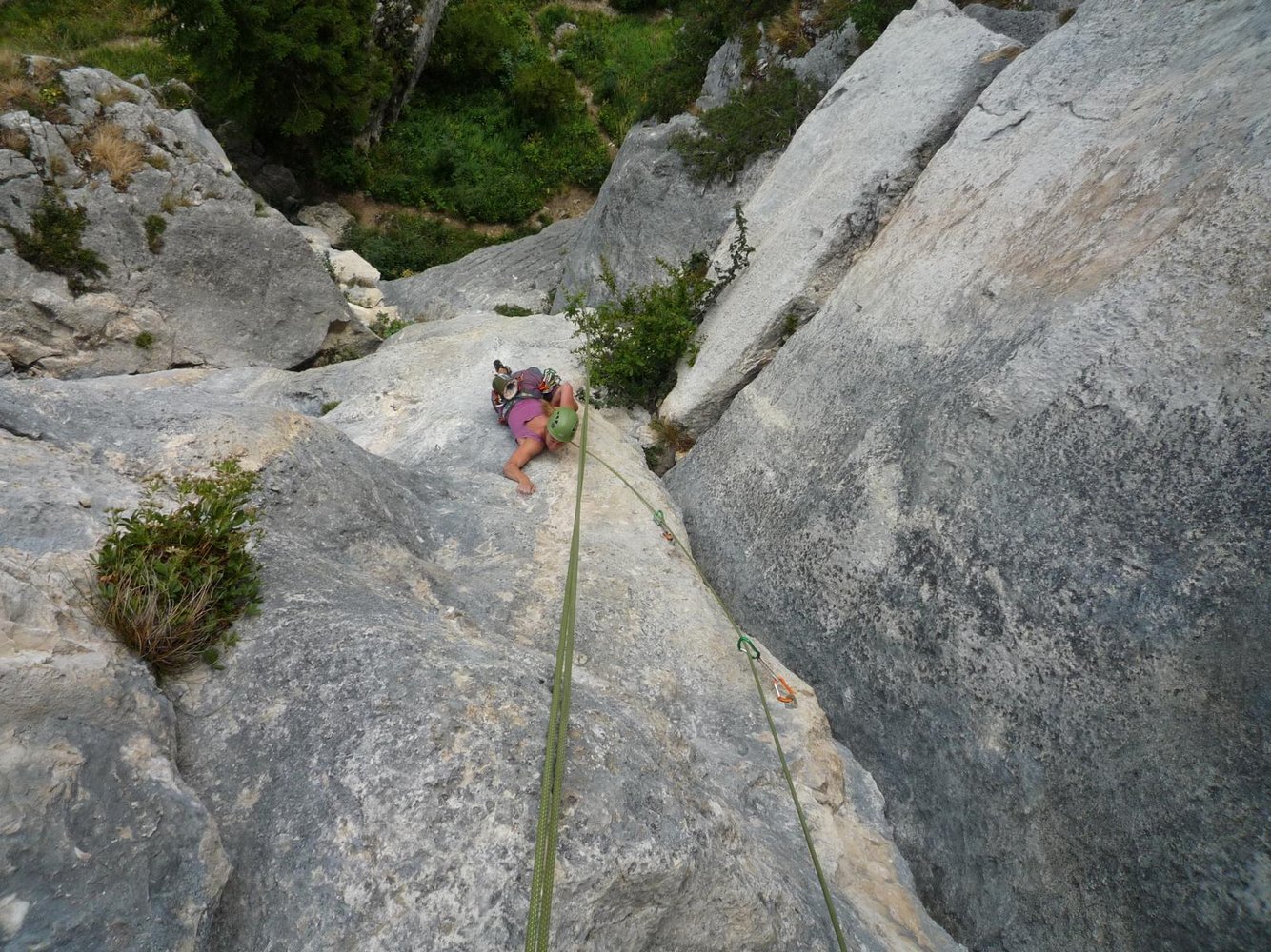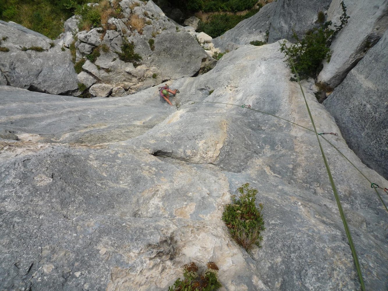 In der 2. Seillänge durch die Querung leider danach gr. Seilzug!