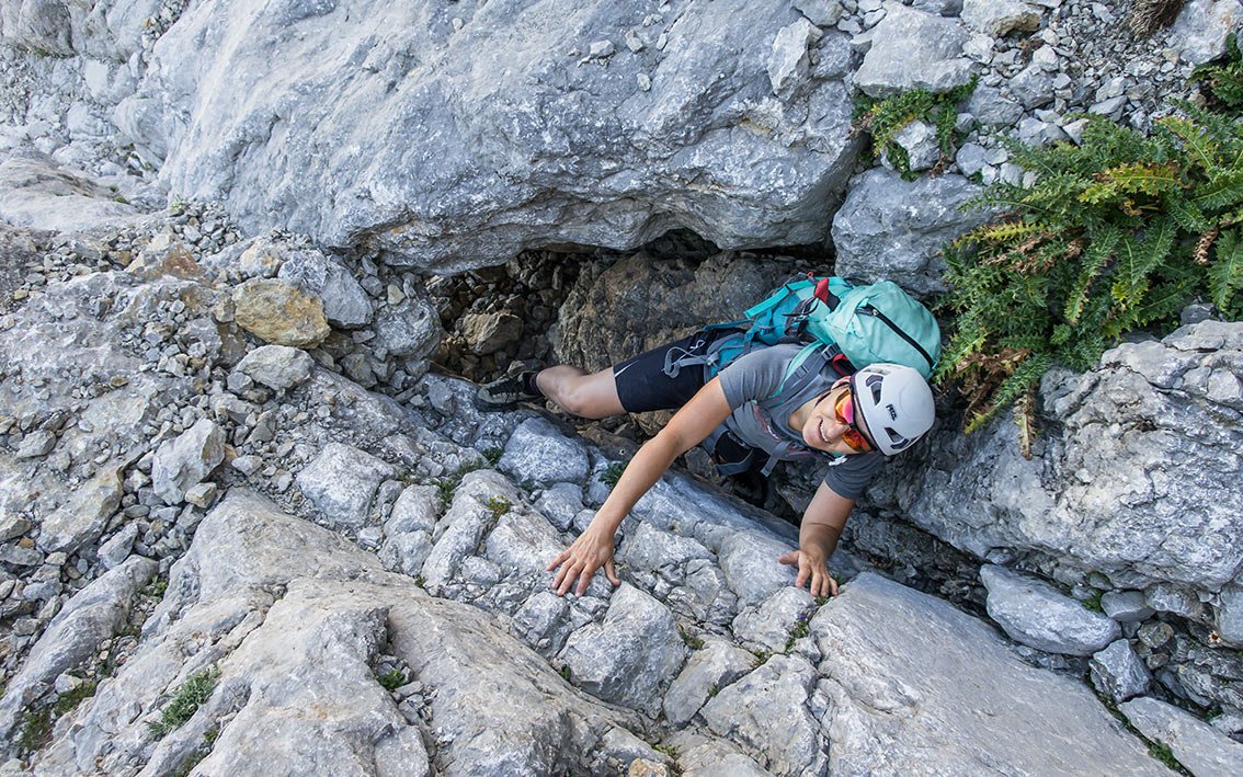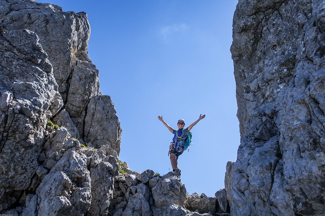Der Grat ist selbst mit mobilen Sicherungsgeräten abzusichern.