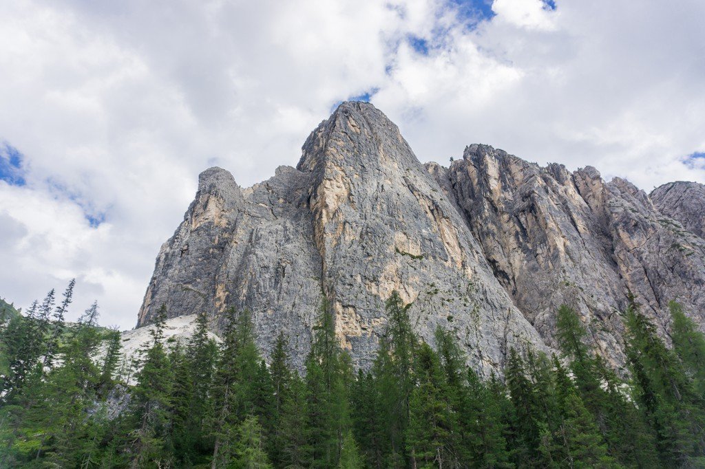 In das Rienztal wandern bis unter die Rinzwand. Auf der anderen Bachseite steht ein großer Stein mit Steinmännern darauf. Hier über den Bach queren und gegebenenfalls ein Rucksackdepot machen. Durch den lichten Wald führt ein Weg zum Wandfuß der Rienzwand. wo die Tour „Hat Spaß gemacht“ startet. Den Wandfuß entlang nach links folgen. Die Schotterreiße links bei Steinmännern queren. Weglos lt. Foto zum Wandfuß und über das Band (I-II) zum Einstieg gehen.
