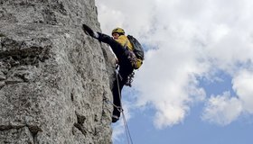 Die Schlüsselstelle im 7. Grad kann links umgangen werden. Auch wenn man teilweise A0 klettern kann, sollte man zumindest den 6. Grad sicher beherrschen.