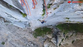 Die „Pero“ ist eine wunderbare Tour auf den „Elefantenrüssel“ am Stup. Die pero zieht unmittelbar rechts neben der „Karabore“ und der „Walter Wolf“ gerade nach oben. Perfekt für den ersten Tag oder auch zum Ausklettern am Ende des Tages. Herrlicher Fels mit abstrakt und filigran wirkenden Schuppen, die oft hohl klingen- Trotzdem höchster Klettergenuss!
