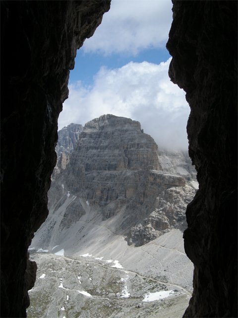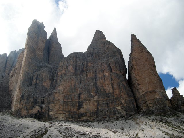 Vom Parkplatz Auronzo Hütte westlich breiten Weg bei der Lavaredohütte vorbei bis zum Sattel gehen. Hier dann nach links über Schotterweg bis zum Einstieg (ca. 50min).