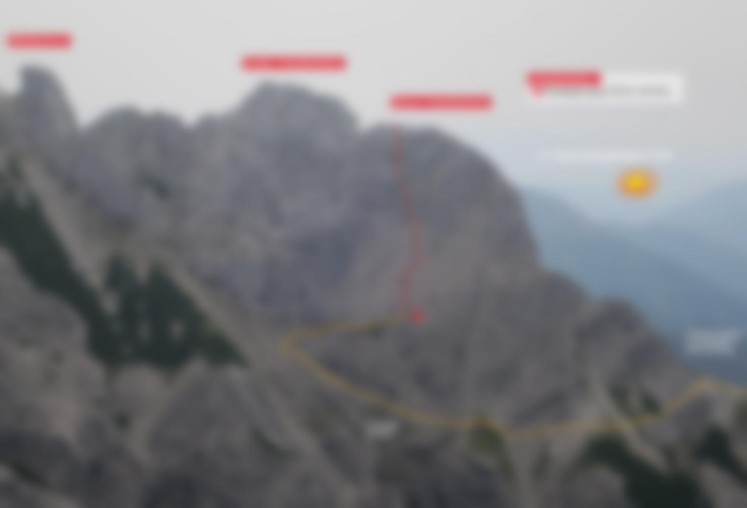 Vom Landeplatz schwachen Steigspuren auf die Nordseite folgen - immer wieder auf- und absteigend, der Steig wird deutlicher. Unter der Nordwand kommt man zu einer kleinen Scharte, nach der man ein kleines Stück etwas ausgesetzt absteigt/abklettert (ca. 1-2).