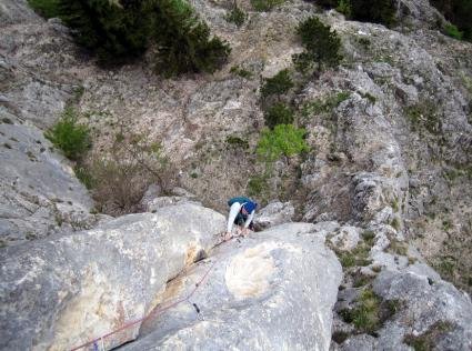 Nette und auch durchaus schöne Neutour am rechten Rand der Sonnenuhrwand. Die Route sucht sich geschickt die schönsten Kletterstellen und führt nur gelegentlich durch etwas brüchiges und schottriges Gelände. Danke den Erstbegehern für diese tolle Neutour.