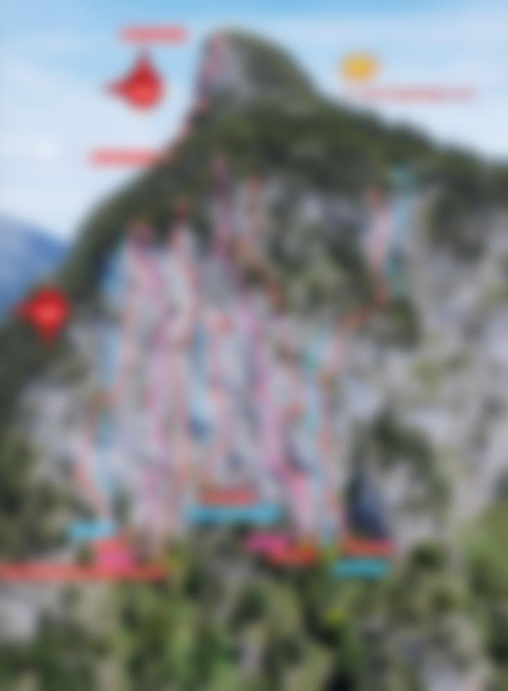Sollten Kletterer in einer der beiden Routen sich befinden (Rabengold oder Gabi) wird vom Abseilen abgeraten - das Abseilen über die Tour wird nur im Notfall empfohlen