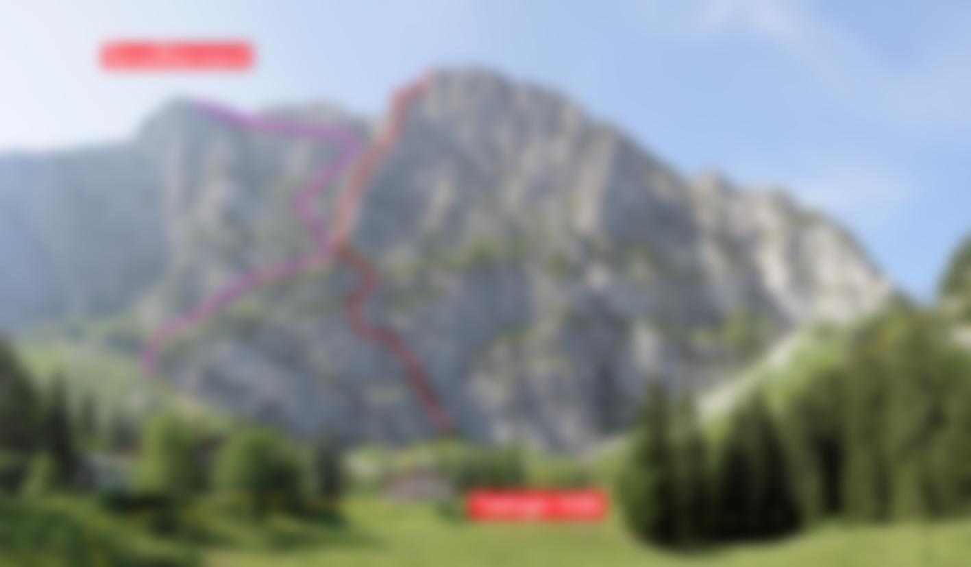 Der Alpin-Klassiker an der Benediktenwand - die Route verläuft durch den zentralen Wandteil, der Einstieg ist quasi direkt hinter der Tutzinger Hütte. Die Kletterei ist alpin, dort wo der Fels kompakt und schwerer ist stecken Bohrhaken, dazwischen aber viel grasiges Schrofengelände. Die schwerste Stelle kommt ganz am Schluss (kann aber gut technisch geklettert werden). Der Anstieg ist die Kombination der Touren "Rampe" und "Rippe", wobei der zweite Teil an der "Rippe" anspruchsvoller ist. An heißen Tage ist die Tour in der Nordwand ideal - wir waren an einem 37° Tag dort, es war perfekt!. Als Tagestour nur mit dem Mountainbike sinnvoll, da man sonst vermutlich ewig zur Hütte und wieder ins Tal braucht. Die Straße ist nur anfangs ein wenig steiler, dann meist flach und sogar etwas Gefälle. Wer die Abfahrt durch das Laimbachtal wählt, kommt auf etwas interessantere Abfahrtsmeter und spart sich obendrein den Gegenanstieg.