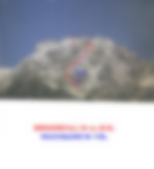 11 mal über Abseilpiste abseilen: 3 mal über die Route Bergkristall (45m, 15m, 40m) abseilen, dann 40m zum Stand an Plattenkante der Route Rauchquarz abseilen und weiter geradlinig über die Route Rauchquarz (40m, 40m, 25m, 45m, 45m, 45m, 50m über Schrofen) abseilen (siehe Topo).