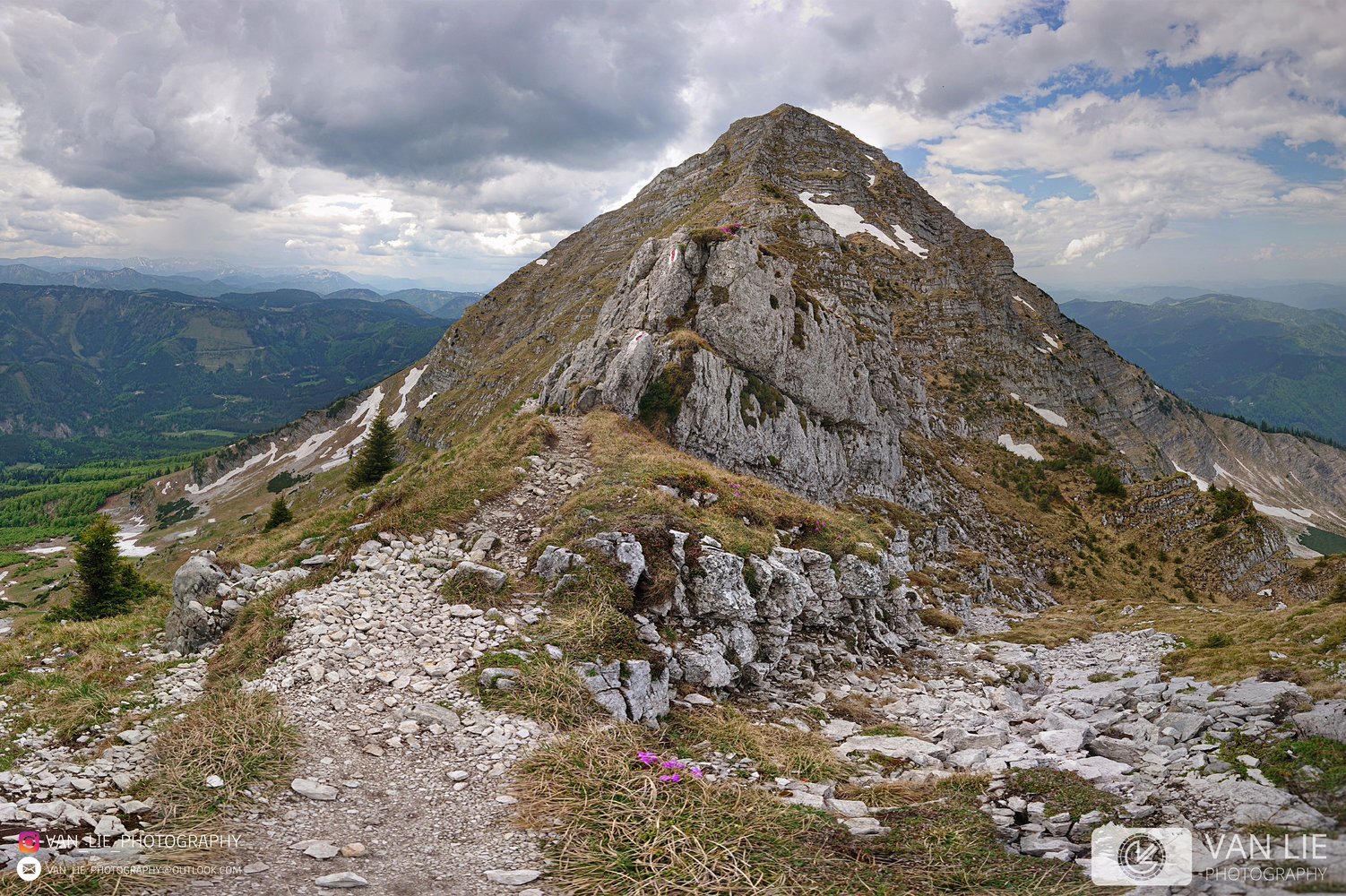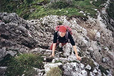 Vom Parkplatz in Raneck auf markiertem Weg bis zur Baerenlacke (ca. 1 Std.), ueber den rot markierten Weg (Tafel) durch steilen Wald (nur nicht aufgeben!) und am Schluss durch eine Latschenzone bis auf den Kamm hinauf. Nun weiter (zuerst durch Latschen) bis zum ersten Felsaufschwung.