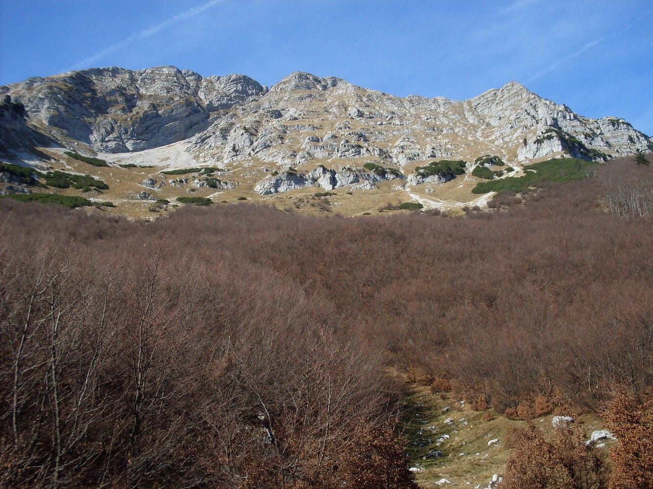 Die ersten Felsen werden rechts umgangen bis man nach einer kurzen Wandstelle ca. 1- in eine Scharte gelangt. Nun direkt oder rechts bis zur ersten Steilstufe (1). Diese wird in Rinne und links ueber Schroffen umgangen (1) (direkt 2-). Nun immer den Grat (Kamm) entlang (kurze Aufschwuenge, meist leicht auf der Suedseite; 1 - 1+) bis zum Vorgipfel und von diesem unschwierig zum Gipfel 1893 m