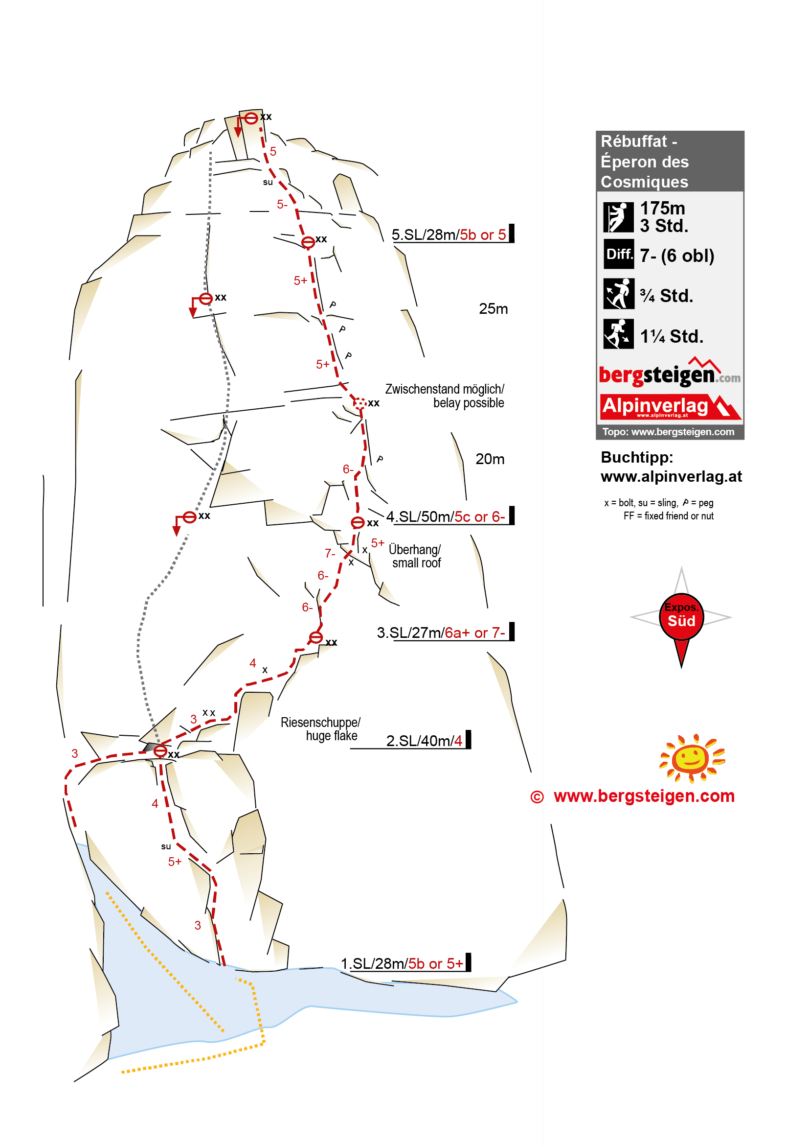Alle Stände sind mit 2 Bohrhaken ausgestattet. An der Schlüsselstelle stecken 2 Bohrhaken im kleinen Überhang.
