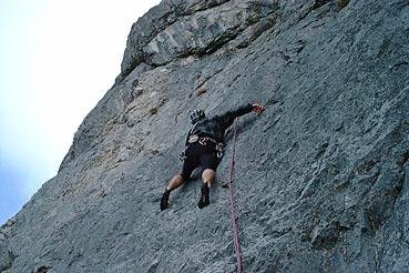 50m Doppelseil , 10 Expreßschlingen, Friends 2 bis 3, Stopper und Helm.