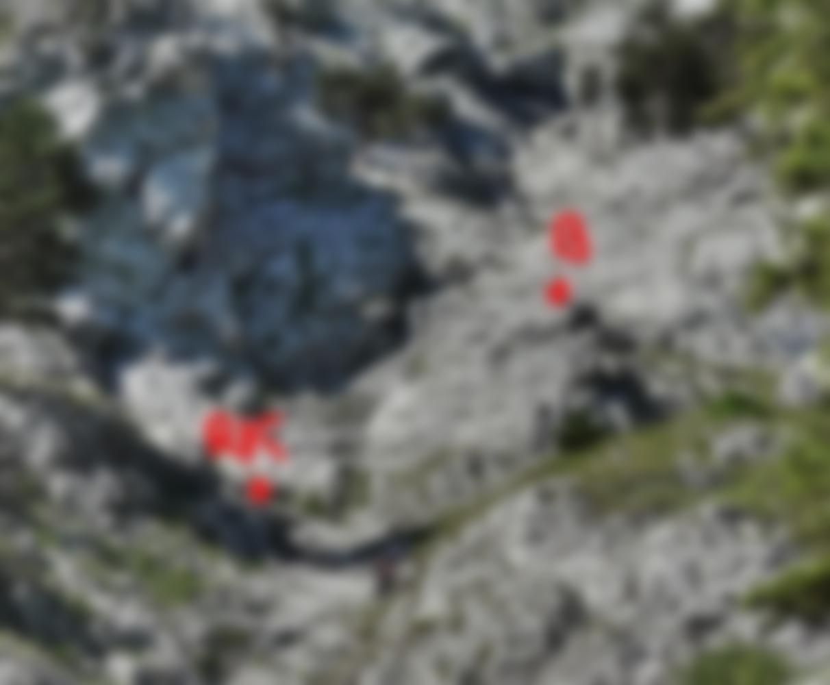 Absicherung mit Bohrhaken (Bühler und Schwerlastanker), fixen Sanduhrschlingen und einigen selbst zu legenden Baumschlingen.