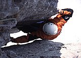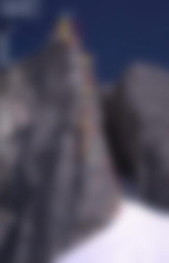 Nach links hinauf an die Kante, bis diese ungangbar wird (1H IV+), nun über eine glatte Platte nach rechts (2H, VI+ oder IV/A0) und gerade weiter zum Ende der Platte. Rechts der Kante zum höchsten Punkt.