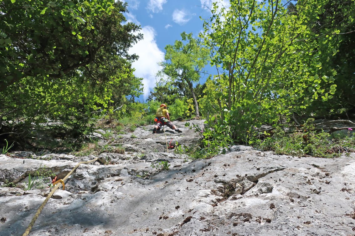 Die Tour wurde recht gut mit Bohrhaken und Sanduhrschlingen gesichert.