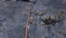 Die kurze Passage im 8. Grad kann mittels Schlinge A0 geklettert werden.