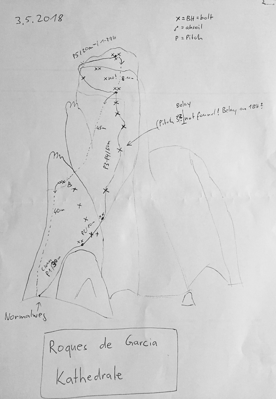 Wir haben die Route mit einem 80m Seil geklettert. Dann muss 3x abgeseilt werden.
