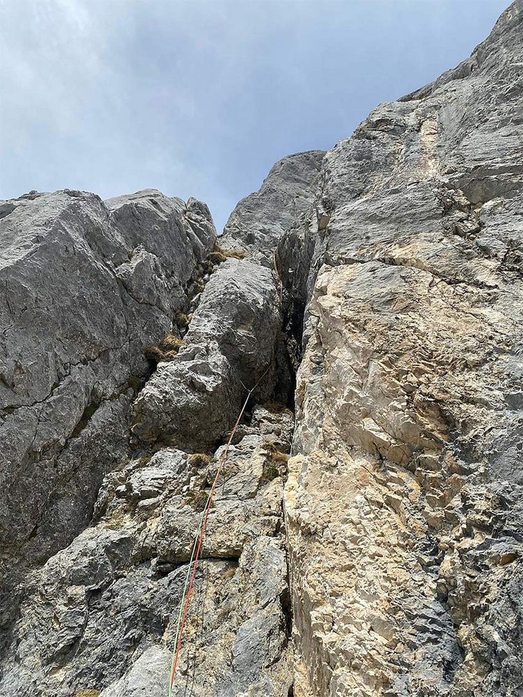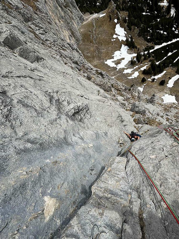 Neben der Südverschneidung gehen sehr nahe noch andere Routen auf die Rote Flüh, und kleine Verhauer sind so recht verlockend.