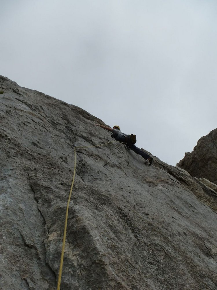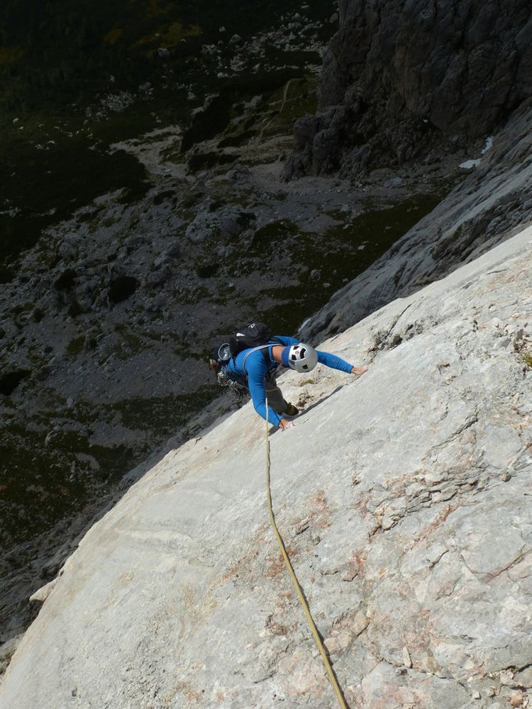 Zur Trogkofel Südwand braucht man eigentlich nicht viel sagen. Alle Touren sind außerordentlich schön, haben festen, teils wasserzerfressenen Kalk und sind sehr gut abgesichert. Die Routen sind sich vom Charakter her sehr ähnlich, sie besitzen oftmals technische Passagen und fordern eher die Beine als die Arme. 'Rumpelstilzchen'- kompakter Fels, homogene Schwierigkeiten und schöne Klettermoves. Mehr braucht man dazu nicht sagen! An der Trogkofel Südwand kann man aufgrund ihrer 'Süd'-Exposition vom frühen Frühjahr bis in den späten Herbst klettern.