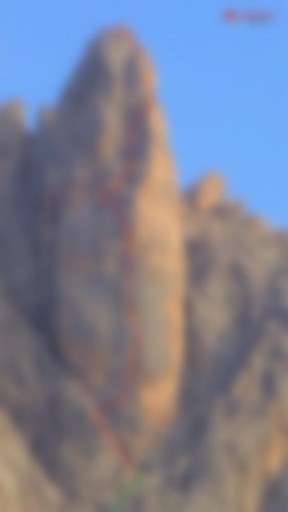 Der auffallend pralle Felsturm an der Nordseite des Langkofels bietet Emilio Comicis letztes Meisterwerk- seine letzte Erstbegehung kurz vor seinem Tod. Den Anforderungen sollte man mit Reserve gewachsen sein, zumal die Absicherung teilwiese etwas spärlich ausfällt. Sicherer Umgang mit Klemmgeräten ist daher zwingend angeraten.