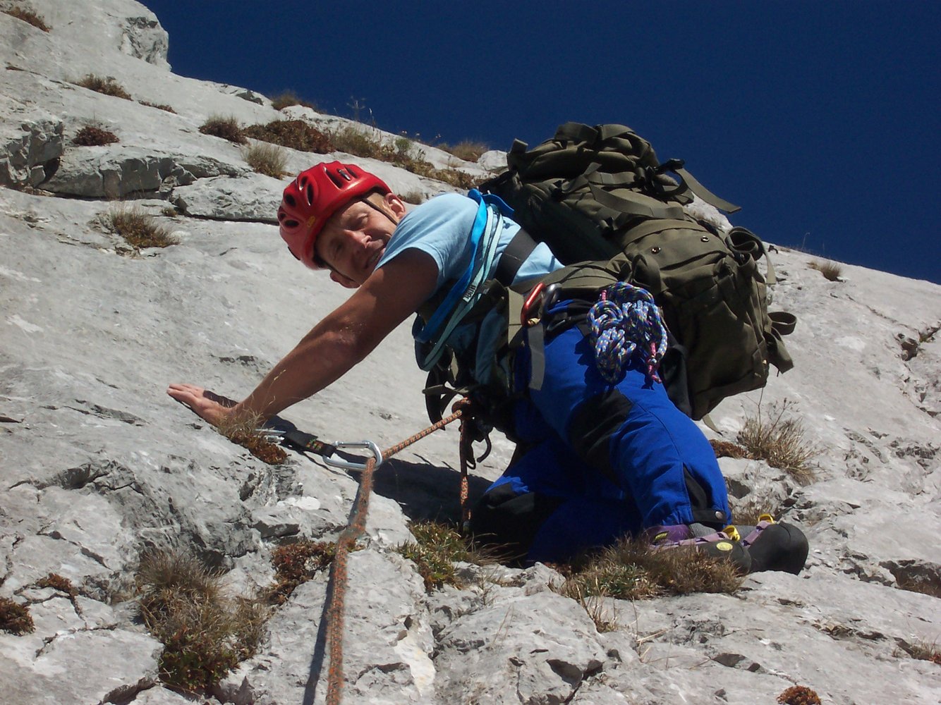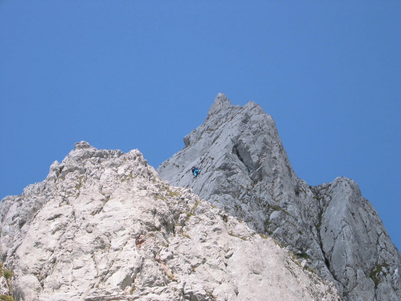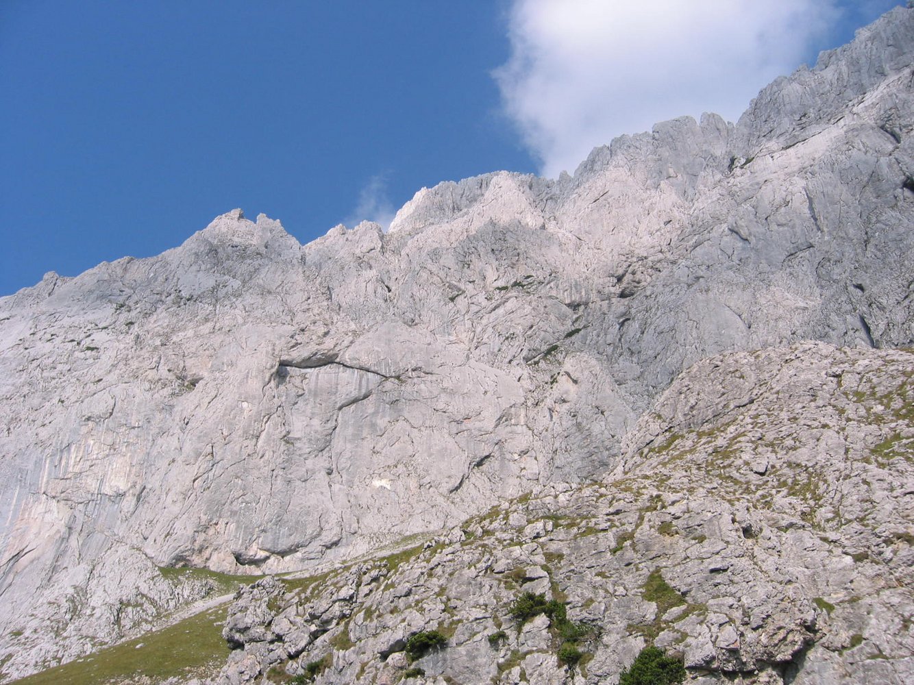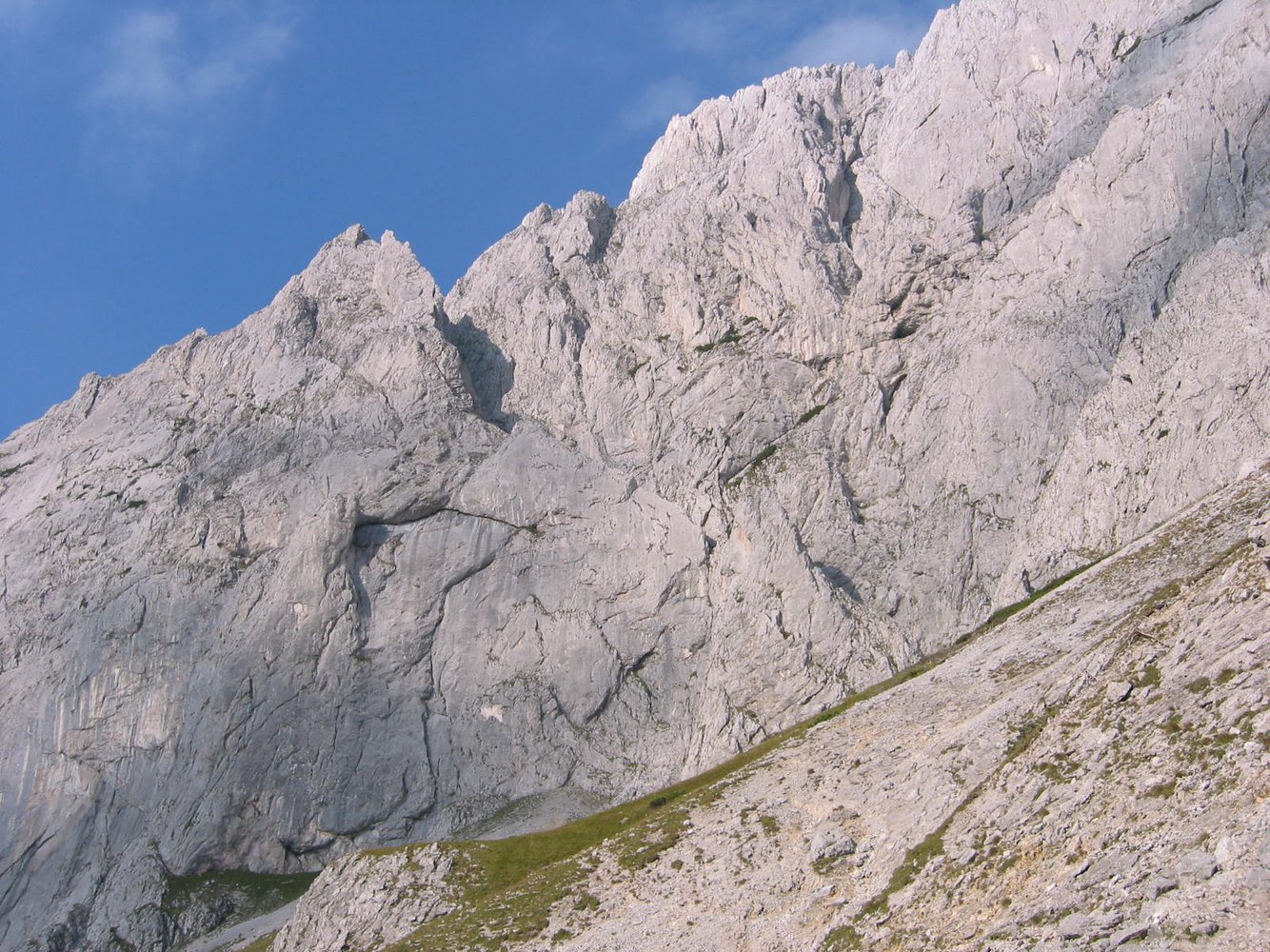 Die Schartenspitze Südwand ist eine genussvolle (2 bis 4-), abwechslungsreiche Felsfahrt mit schönem Gipfelerlebnis im Gebiet um die Flötzalm. Genau gegenüber des Flötzsteins erhebt sich die Schartenspitze recht imposant als Vorgipfel des Winkelkogels. Die Route führt im Prinzip diagonal von rechts nach links auf einem der Wand vorgelagerten Grat. Der Fels ist dort wo es darauf ankommt kompakt, dazwischen sind einige schroffige Passagen und Gehgelände. Die Route ist für diesen Schwierigkeitsgrad sehr gut abgesichert. Ein KK - Grundsortiment und einige Bandschlingen sind aber auf jeden Fall anzuraten.