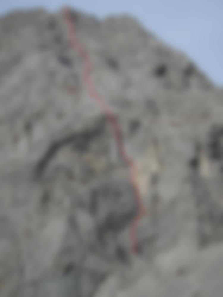 Achtung: Sollten sich bereits Kletterer im oberen Teil der Route befinden ist für nachkommende Seilschaften mit Steinschlag zu rechnen. Besonders der flache Mittelteil ist diesem stark ausgesetzt. Ein Rückzug aus der 3. und 4. Seillänge ist mit Schwierigkeiten (stark überhängend und schräg) verbunden!