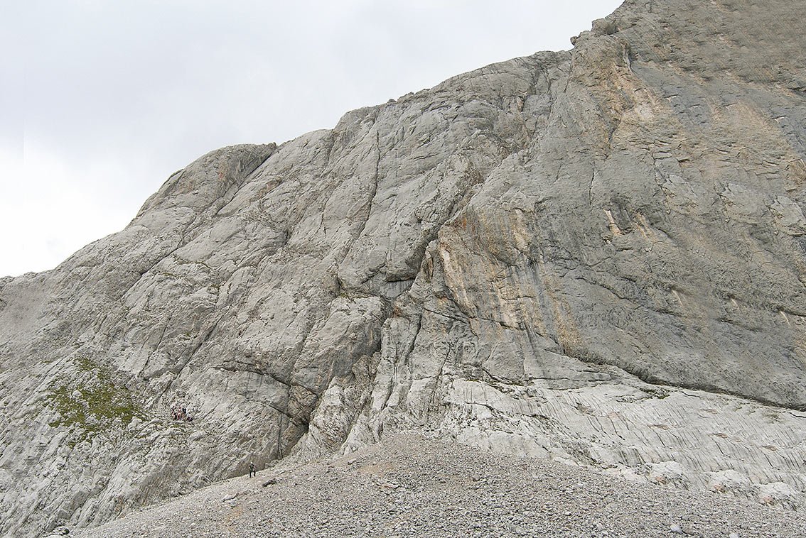 In den leichten Seillängen meist nur 1 bis 2 Haken, in den luftigen Kantenlängen 4 bis 5 Haken.