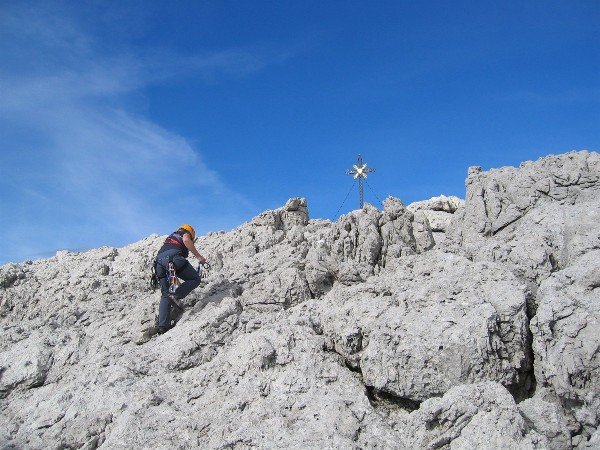 Von der Scharte (siehe Zustiegsbeschreibung) noch einge Meter über Gehgelände zun ersten BH. Weiter siehe Topo.