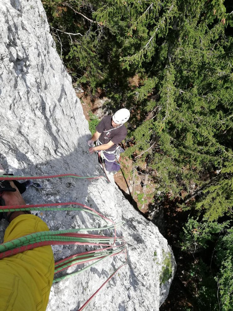 Sehr schöne Neutour rechts von der Ostkante, die zu den besten schweren Burgstall Touren gehört. Drei schöne, steile und sehr kraftraubende Seillängen im besten Fels. Go for it!