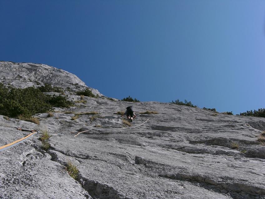 Gesamt ist in der Wand auf Steinschlag zu achten – die ersten beiden Zustiegsseillängen sind etwas brüchig !!