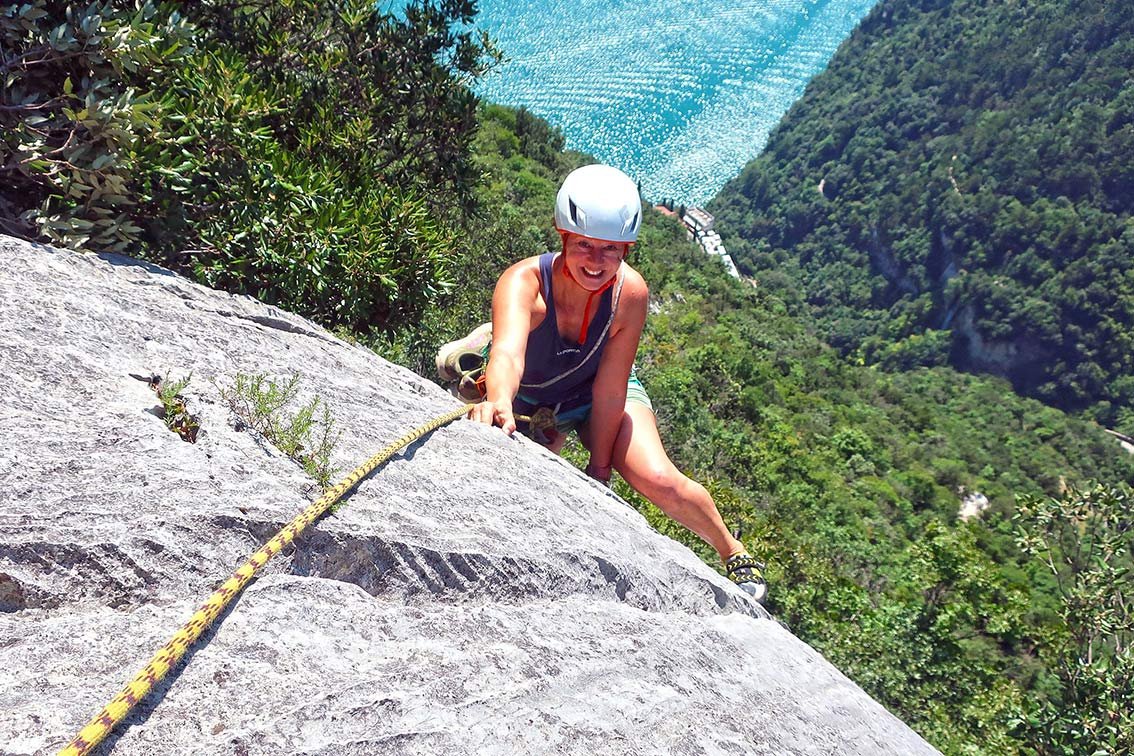 Die Semiramide im Val di Ledro ist eine recht abwechslungsreiche Tour. Der Anstieg sucht sich geschickt entlang von Platten den besten Fels durch die ca. 100 Meter hohe Felswand. Schöne Platten, eine originelle, lange Querung und steilere Stufen wechseln einander ab. Gute Tour, um den untersten Mehrseillänge-Sektor mit den lange, leichten oberen Touren zu verbinden. Ist nicht ganz so überlaufen wie die Regina del Lago und ein guter Ausweichtipp mit Seeblick.