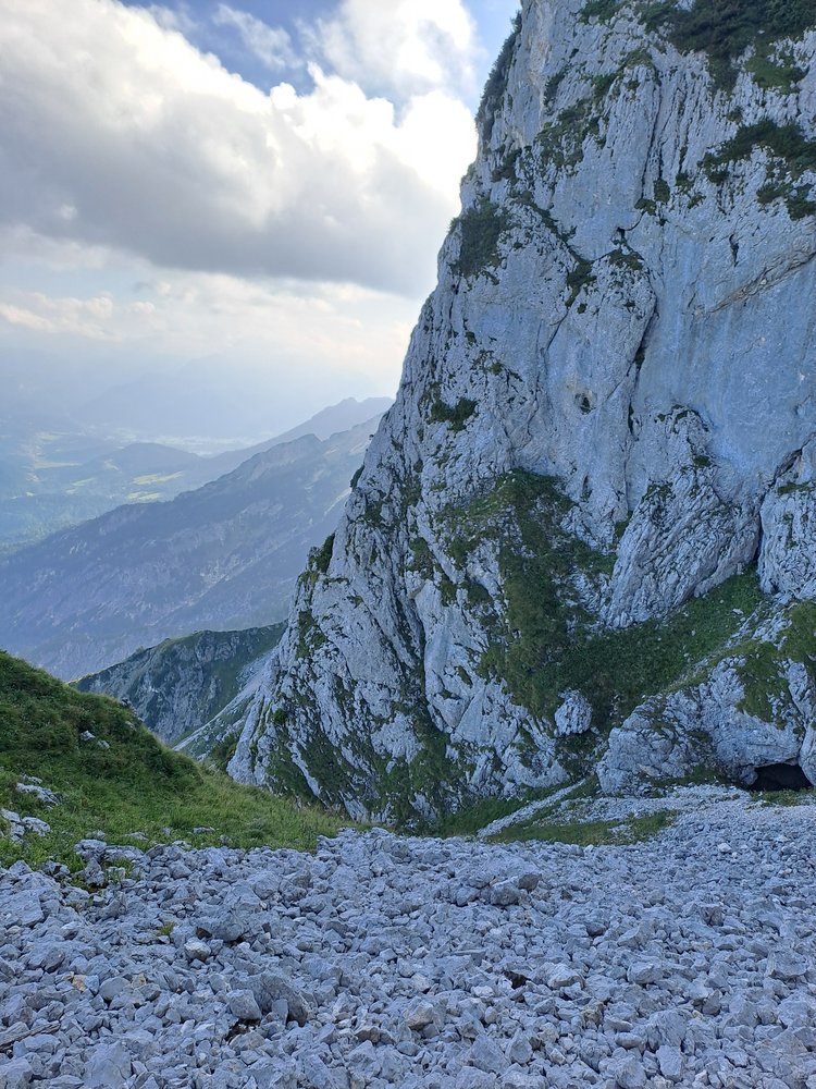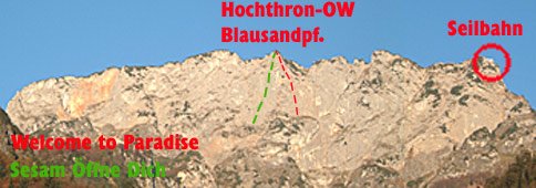 Vom Blausandpfeilergipfel bzw. letzten Standplatz zum Rucksackdepot queren und zurück wie Zustieg. Die letzte Bahn fährt ca. um 17.00 Uhr (eventuell nach Änderungen fragen !).