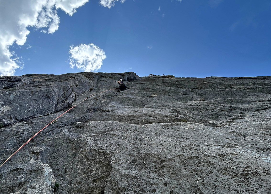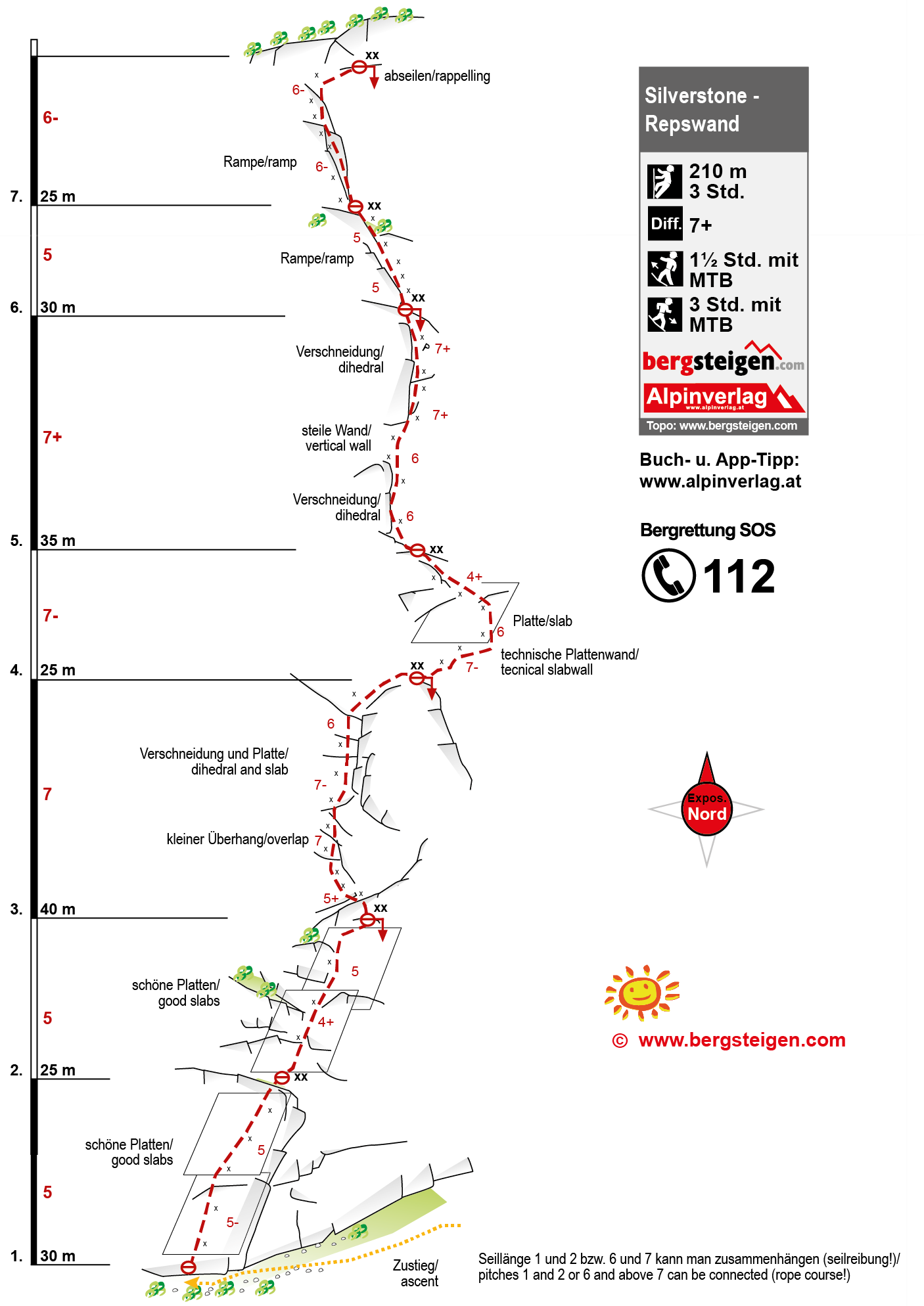 Sehr schöne Kletterei für heiße Sommertage. Die Silverstone ist eine schöne und gut abgesicherte alpine Sportklettertour an der Repswand im Karwendel. Von Platten bis technischer Verschneidungskletterei ist in der Route alles dabei. Der leichteste Anstieg an der Repswand.