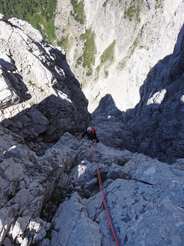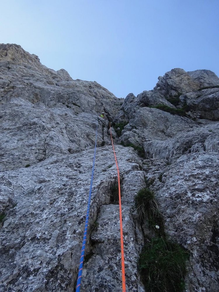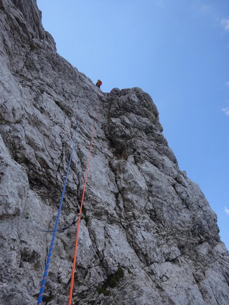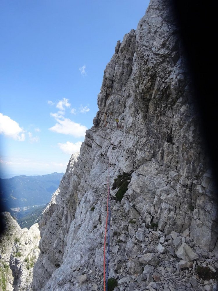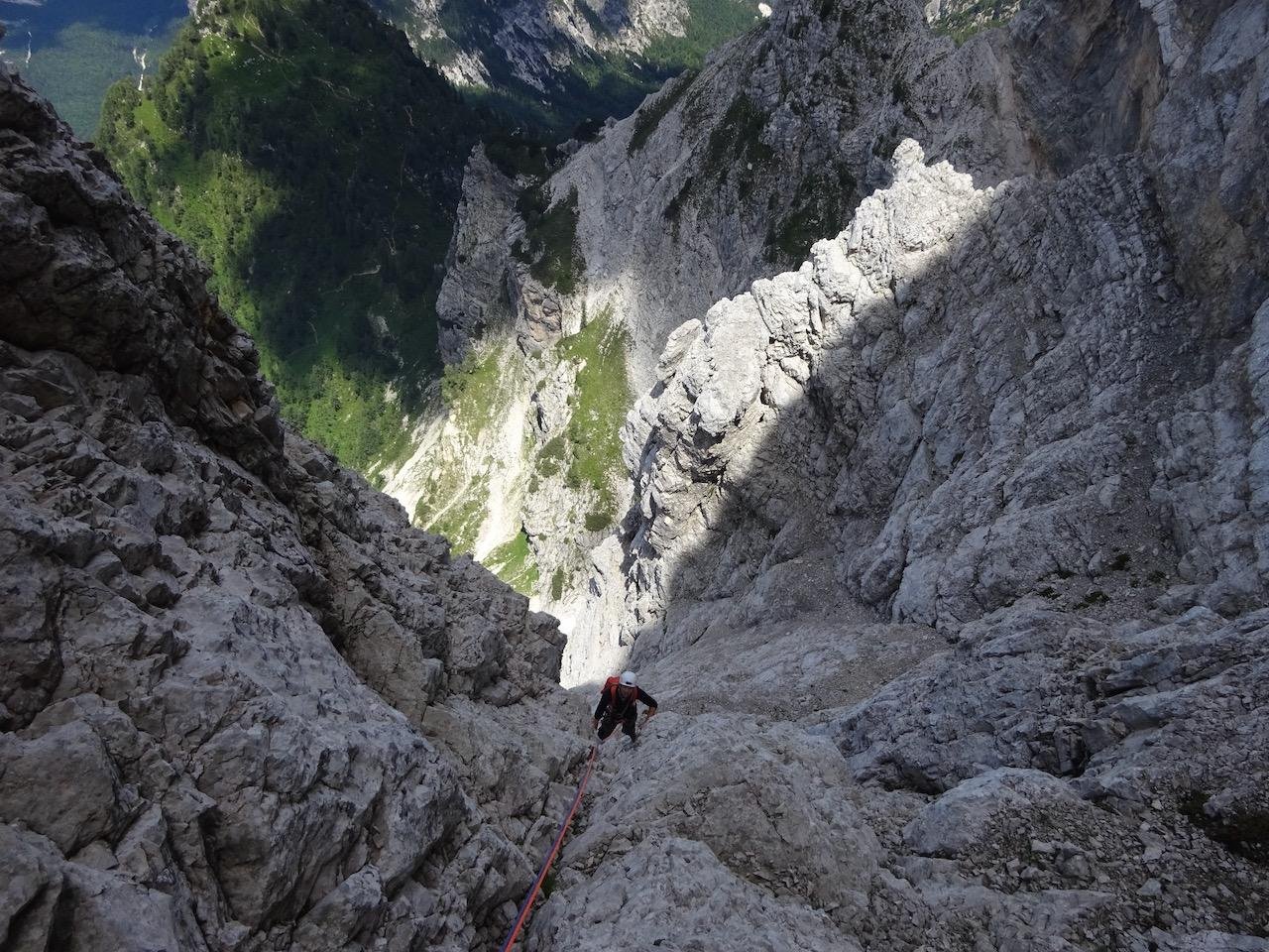 Ein Klassiker in Slowenien! Erstbegangen von der berühmten Mira Marko Debelak in der Zwischenkriegszeit. Wie fast alle Routen in diesem Bereich ist auch die Debelakova Route im unteren Viertel eher brüchig bzw. schrofig. Nach oben hin wird der Fels kompakter und die Kletterei wird sehr kurzweilig. Die Route hat einen logischen Routenverlauf, die Stände sind alle mit mindestens 2 Haken ausgestattet und an den schwierigsten Stellen finden sich genügend Zwischenhaken.