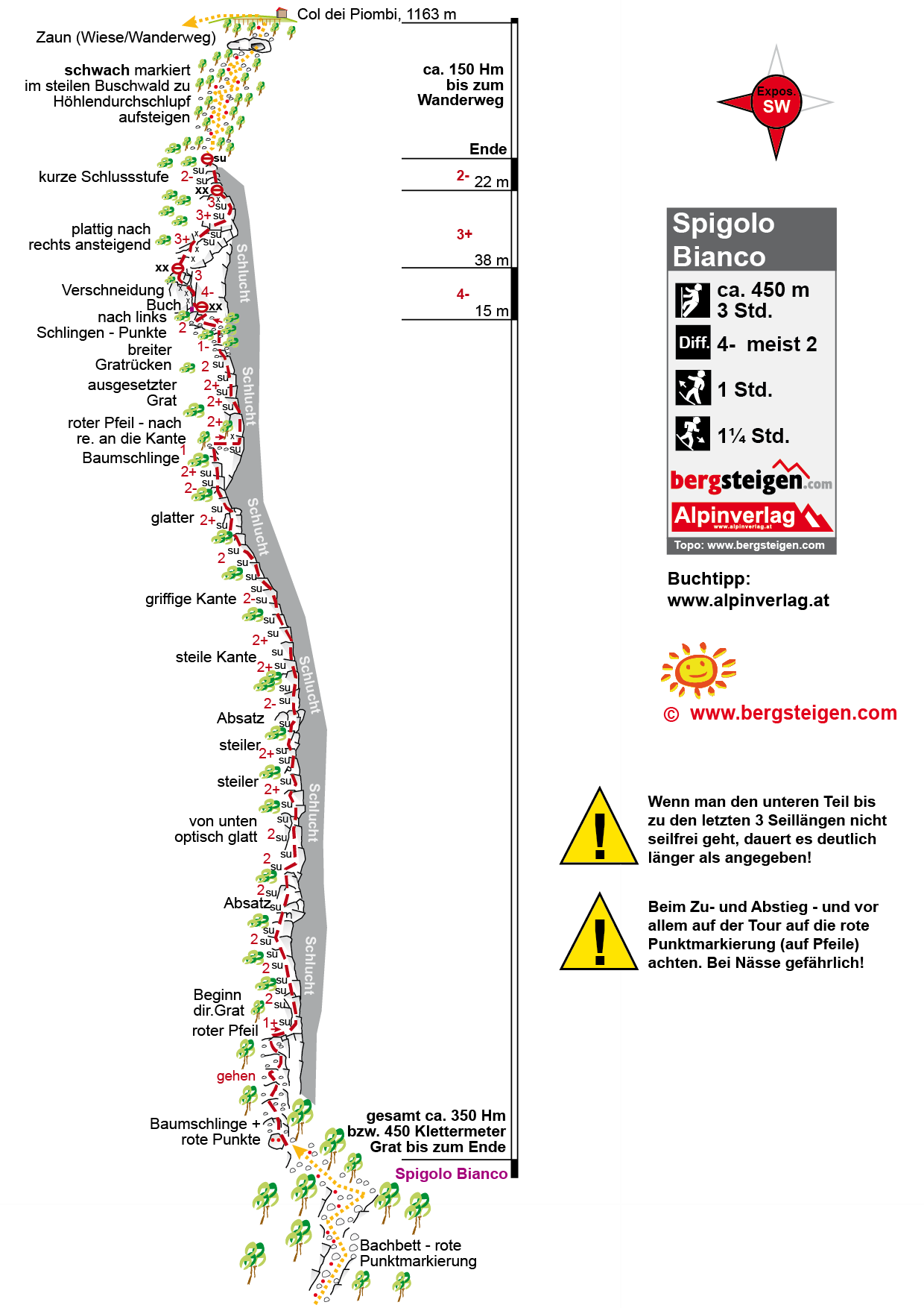 Achtung: Der Zustieg und auch Teile des Aufstieges führen durch ein wegen eines Felssturzes gesperrtes Gebiet (seit 2015 gesperrt, angeschrieben ist aber nichts). Es muss jeder selber wissen, ob er dieses Risiko auf sich nimmt.