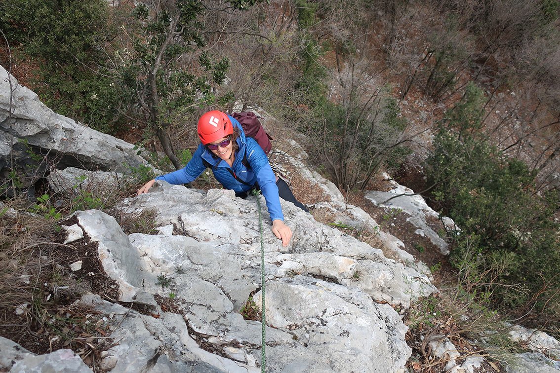 Bei Nässe ist die Route nicht zu empfehlen! In der Route ist - vor allem im oberen Teil - nicht jeder Stein fest, ein etwas alpin erfahrener Vorsteiger ist von Vorteil.