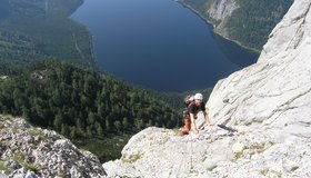 Am Ostufer des Altausseer Sees ragt die gewaltige Trisselwand empor, mitten durch den zentralen Wandteil führt der Stügerweg. Diese leichte aber lange Wandkletterei in mäßig gutem Fels führt über die mittlere Schrägrampe der Südwestwand („Stügerbrett“). Trotz der alpinen Kletterei ein gewaltiges Abenteuer mit tollem Ambiente und herrlichem Seeblick.