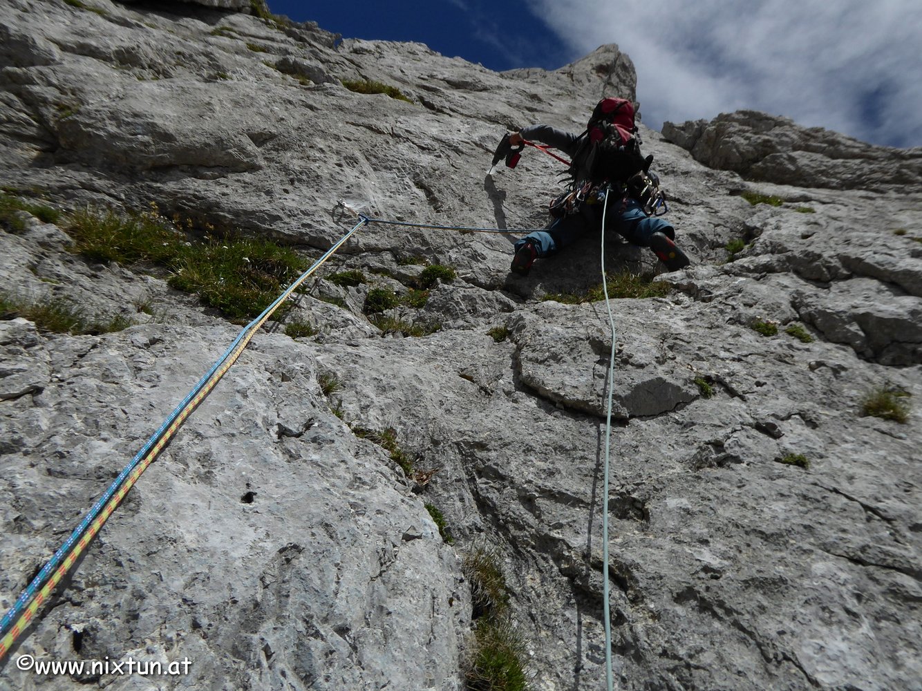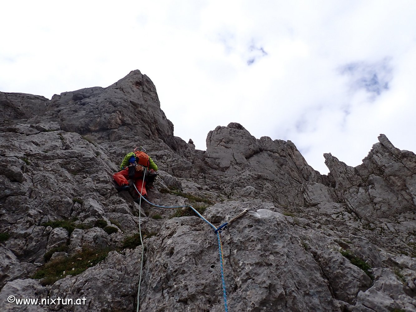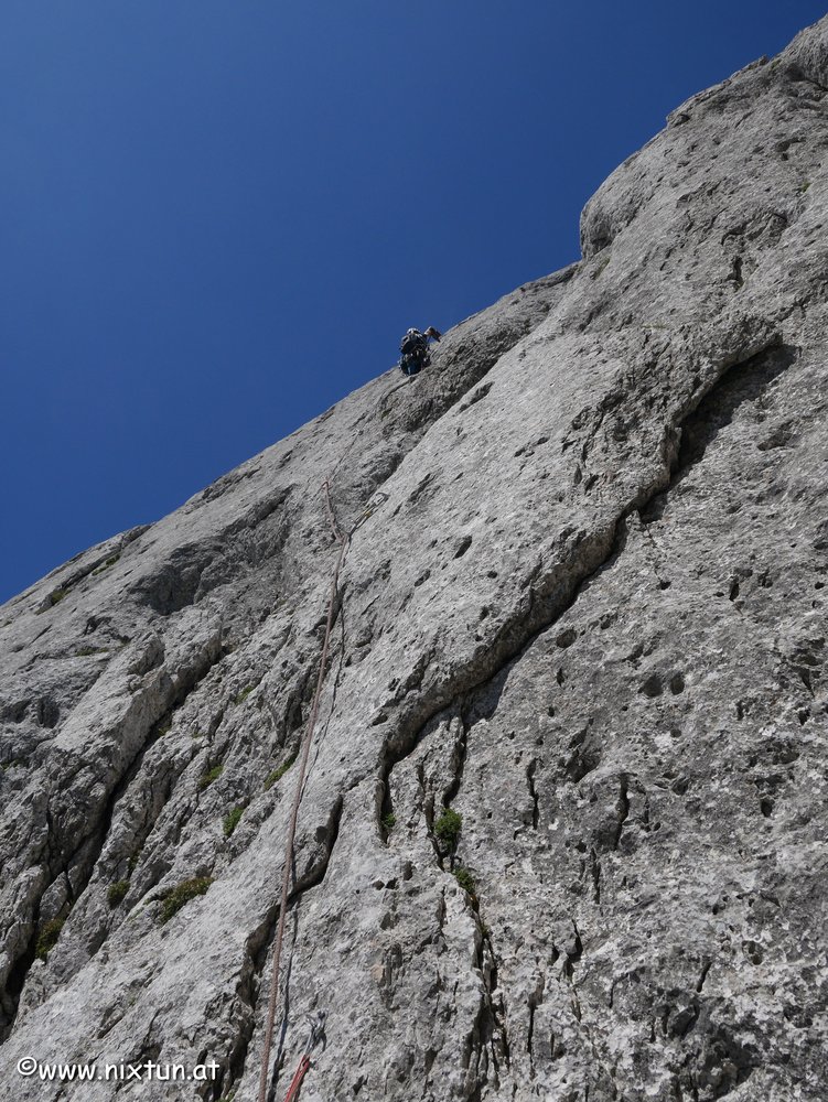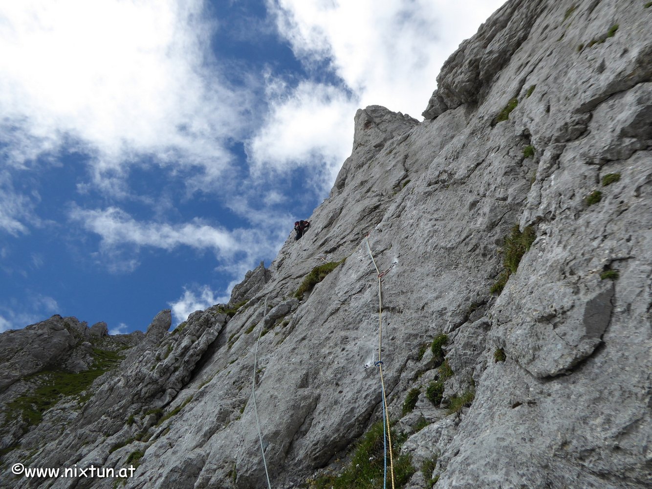 Anspruchsvolle Tour durch den zentralen Teil des vom Stangenkar gut sichtbaren markanten Pfeilers. Die Tour besitzt bis auf die fünfte Seillänge und die Passage am Grat durchwegs festen, teilweise sogar traumhaften Fels.