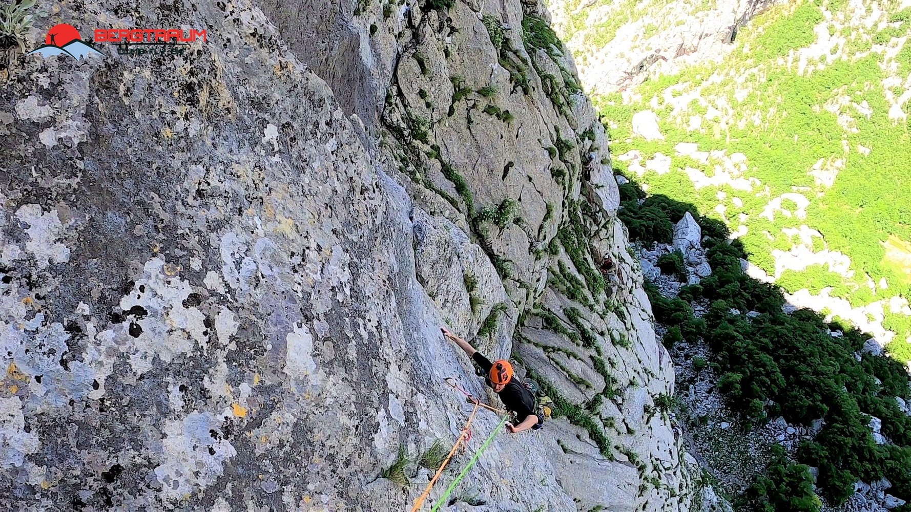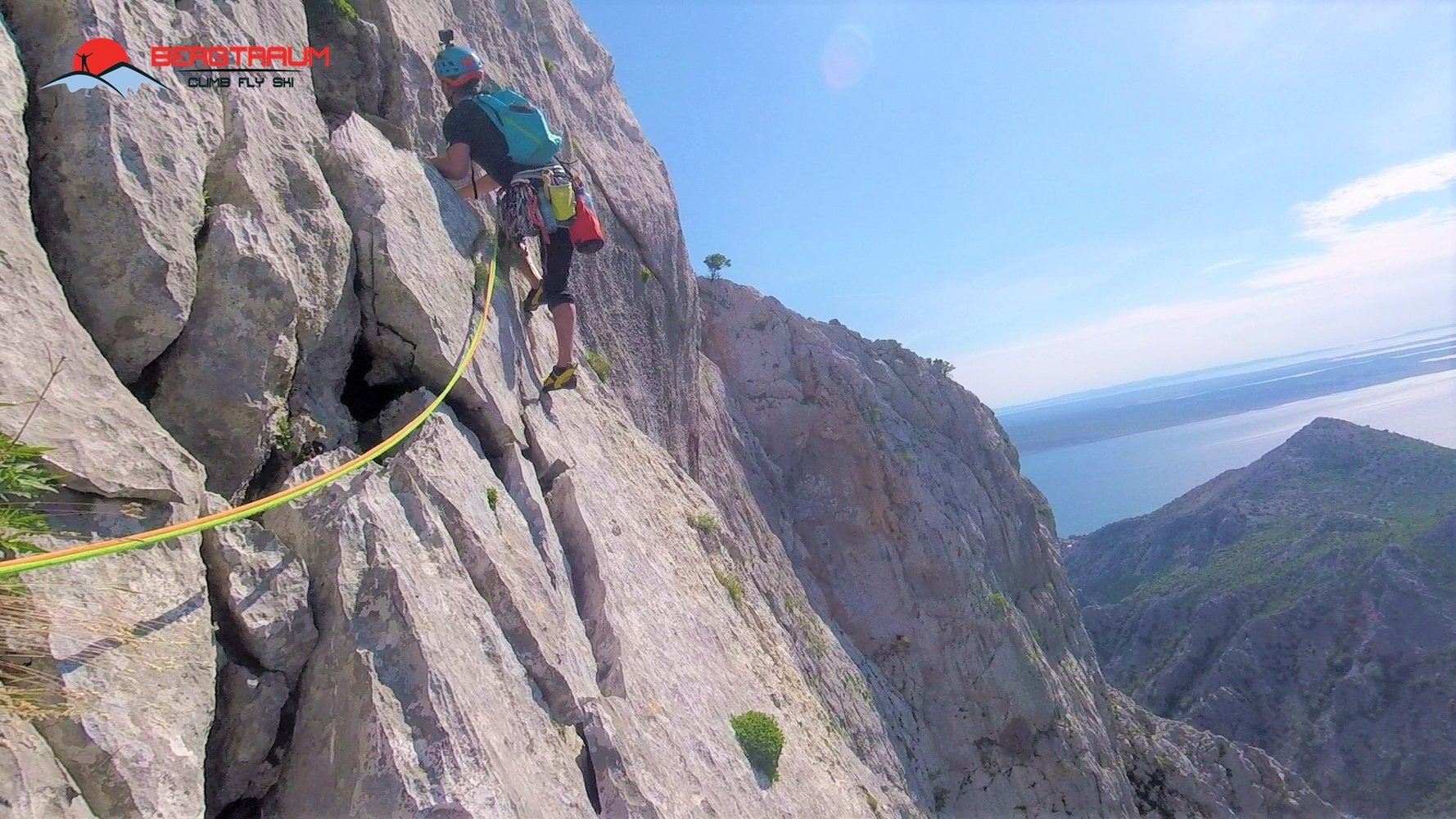 Grundsätzlich typische Paklenica Absicherung (gut, aber weitere Abstände). Ein Satz friends bis 3 ist gut zu verwenden bzw. wird stark empfohlen. Der Mitttelteil verlangt etwas Moral vom Vorsteiger. Die Bewertung der Schwierigkeiten ist hart- besonders die leichteren Längen (5c) haben mit unseren österreichischen 5c- Längen nichts zu tun.