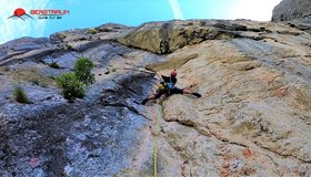 Eine Spitzentour in der Anica Kuk Nordwestwand. Steiler und wasserzerfressener Fels. Die Absicherung ist typisch Paklenica mit eher weiten Hakenabständen. Immer den goldenen Bolts nach- dann kann nix schiefgehen. Die beiden Schlüsselseillängen mittig der Tour sind gut mit Friends zusätzlich abzusichern.