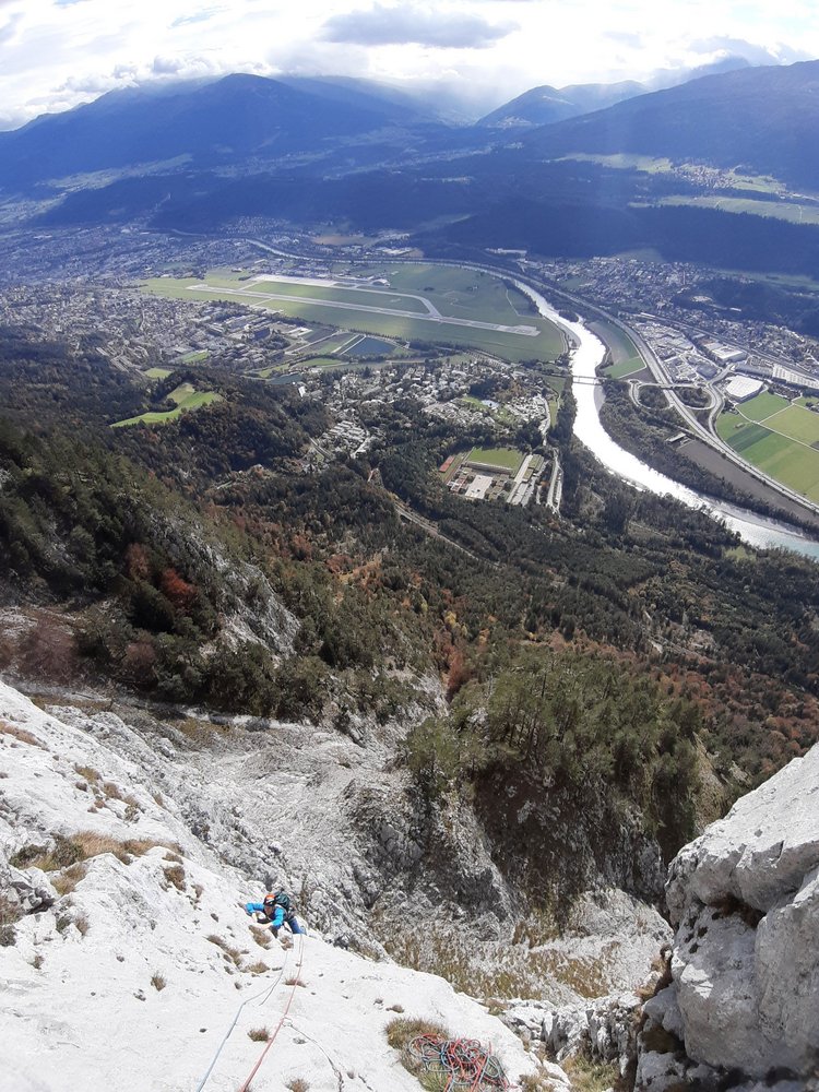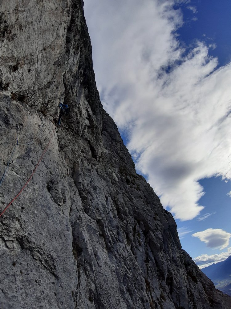 Einstieg über Viaggio nel passato (Scherer, Stöhr 2003) empfohlen - 4 SL, Schwierigkeiten bis 7, relativ gut mit NH abgesichert