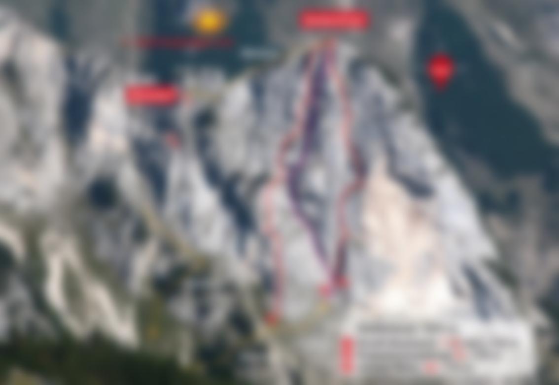 Da ein großes Routenwirrwarr in der Wand herrscht und an manchen Ständen bis zu vier Routen zusammenkommen, ist die Orientierung nicht immer ganz einfach. Die "Südverschneidung" ist der Verschneidung in Wandmitte, links gibt es noch die Bohrhakenroute Ultima Ratio (6+) und recht die "Direkte Südwand" 7. Das Topo bzw. Wandbild mitnehmen!