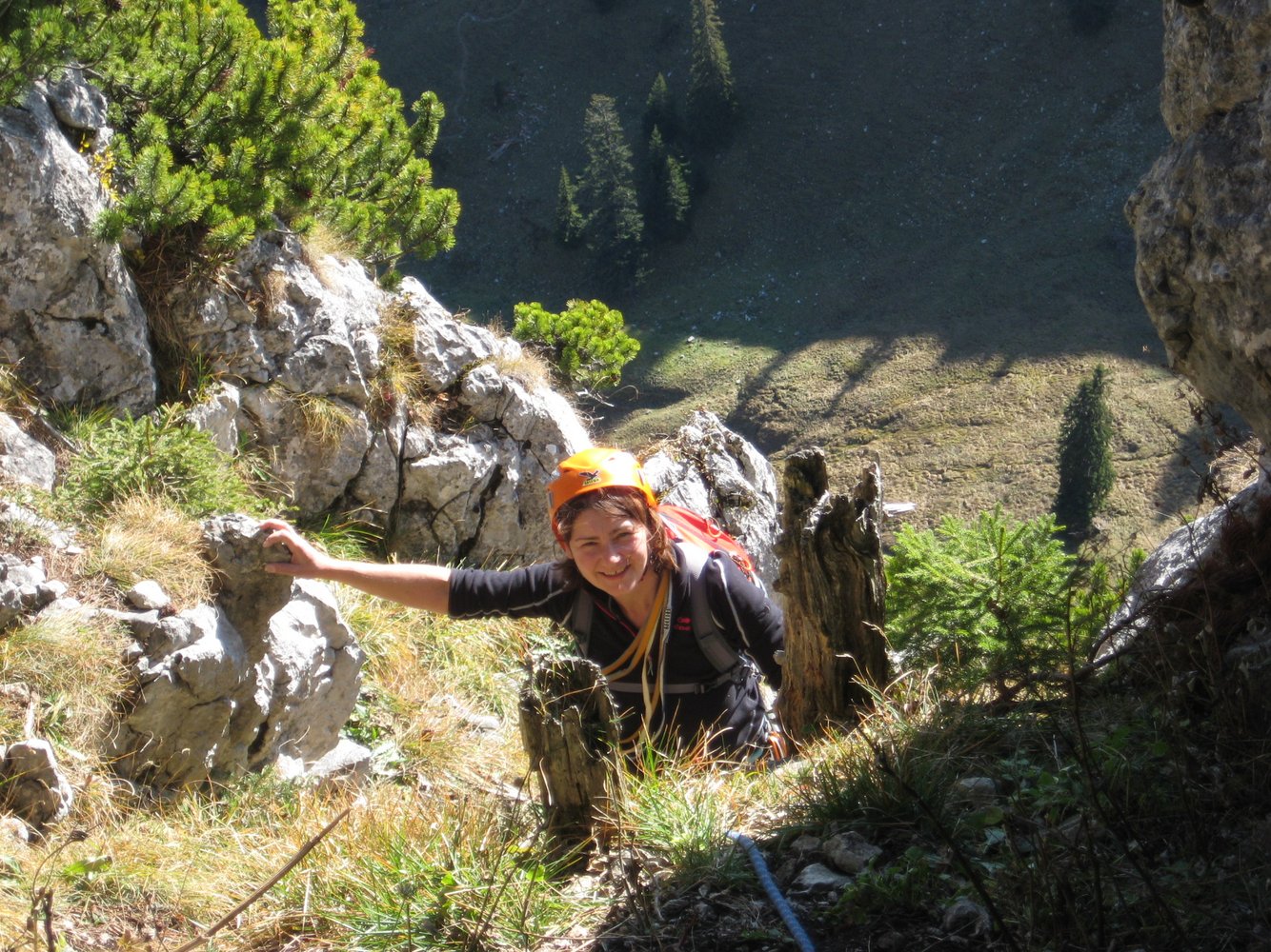 Die Route ist bis auf wenige Meter (in der 4. Seillänge ) identisch mit der Südverschneidung aus dem Jahre 1935 - alte Haken zeugen von der Vergangenheit.