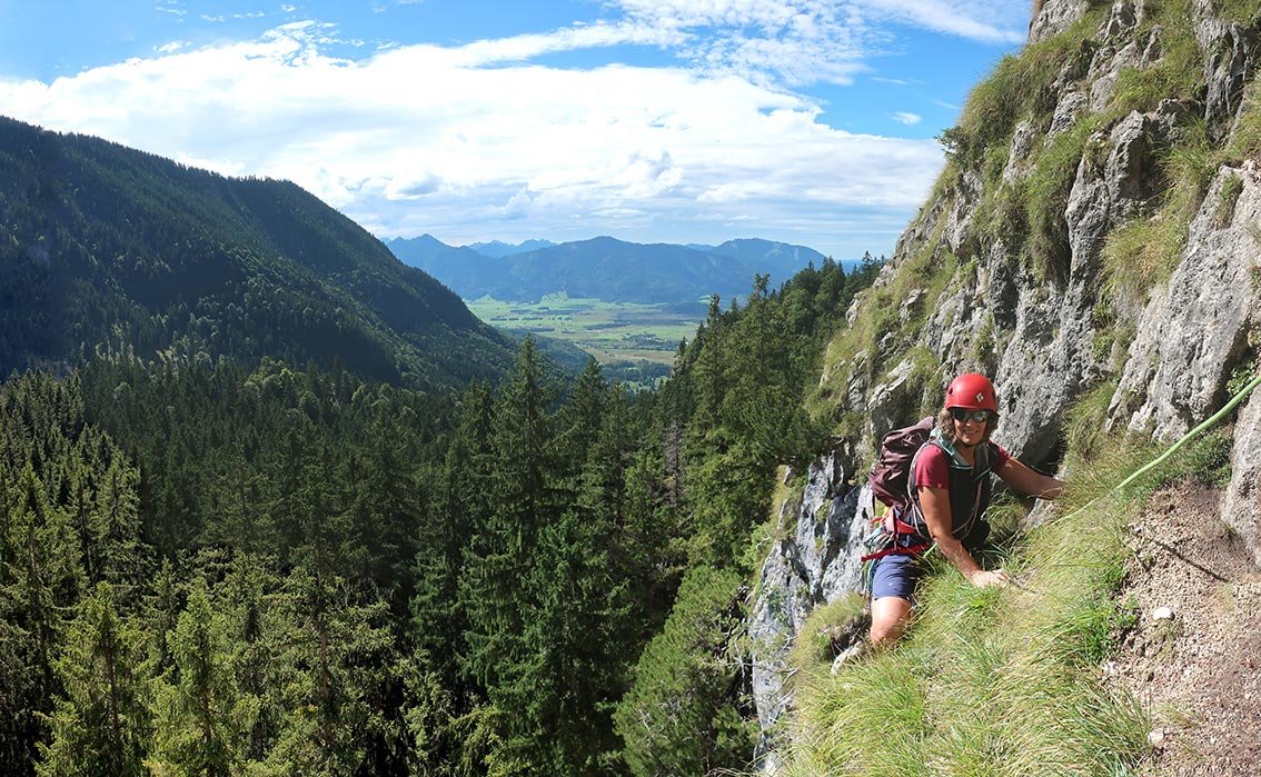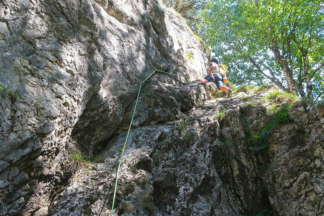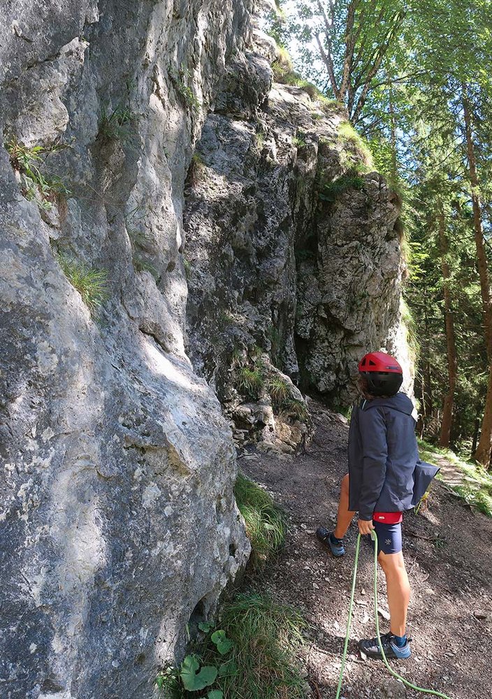 Nach Regen besser zwei trockene Tage abwarten, der schattige Einstiegsbereich wird aber oft etwas feucht bleiben. Der sandige Kalkstein (Ohlstadt Dolomit) ist nicht immer ganz fest.