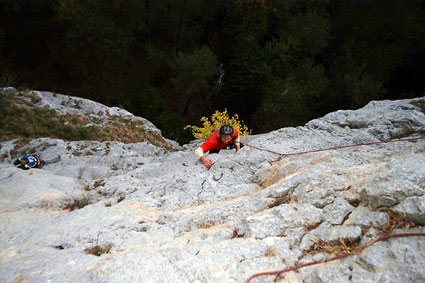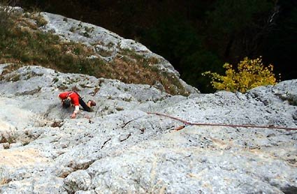 Tolle und gut abgesicherte Tour, die in der 2. SL ganz wunderbare Platten bietet. Die letzte SL ist nicht mehr ganz so schön. Hier kann man über den Gründbacher aussteigen.