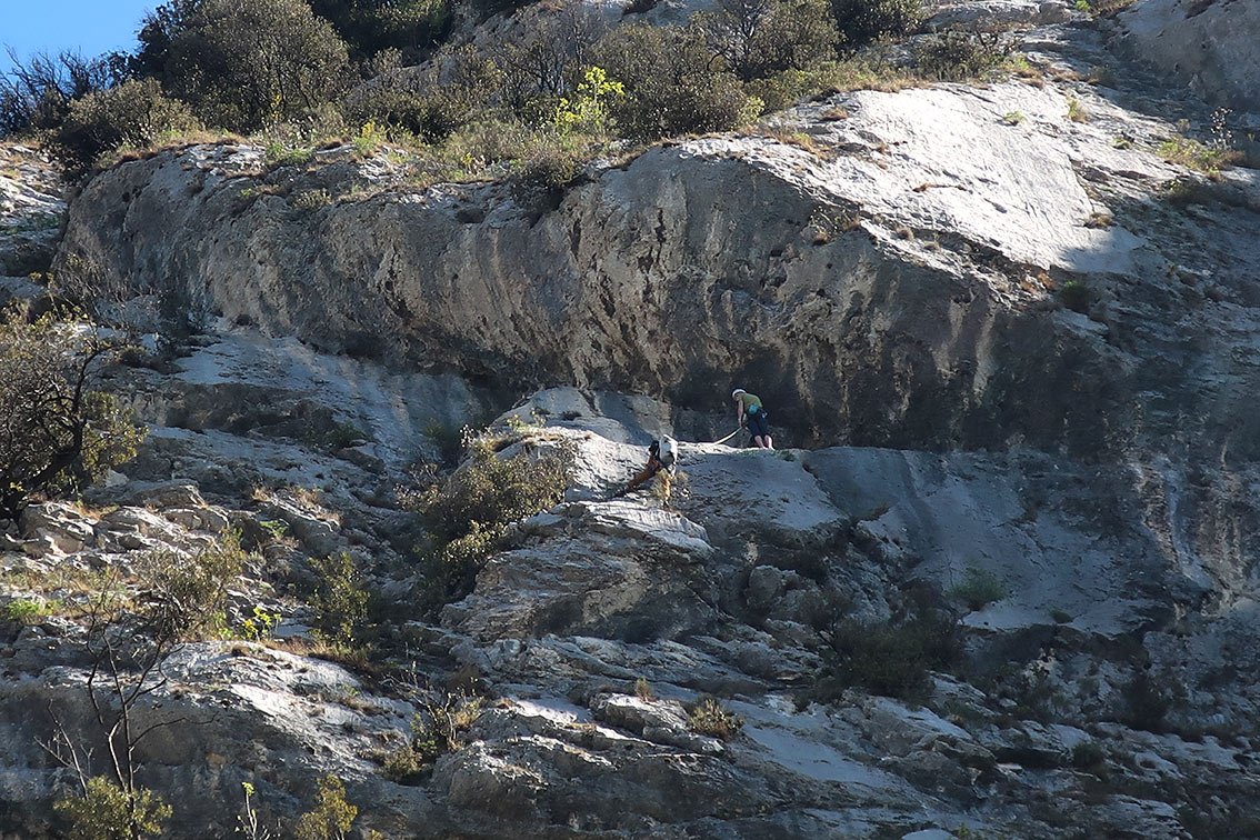 Die Tour ist mit 12 Seillängen recht lang, viele Querungen. Ein Rückzug mit einem Einfachseil dauert, deshalb das Wetter beachten!